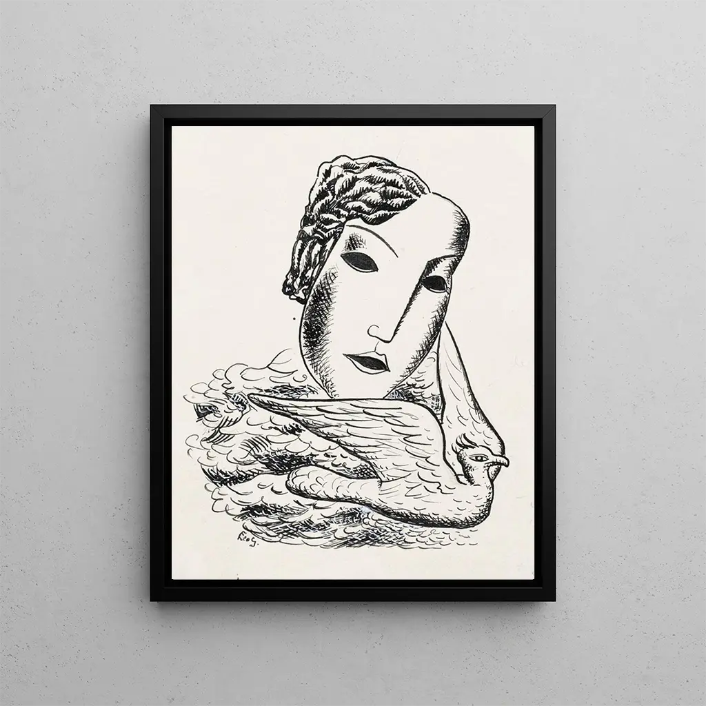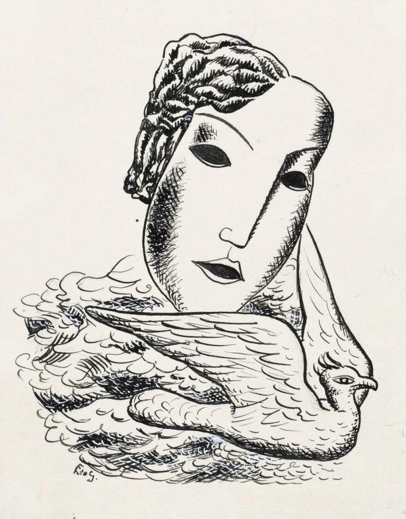 Schizzo di una testa di donna con un uccello - Leo Gestel