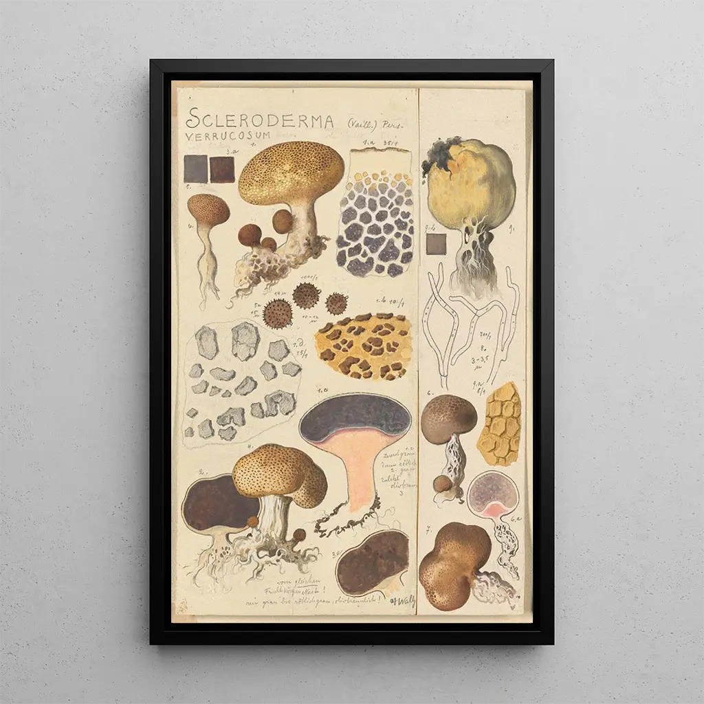 La stampa d'arte di Scleroderma verrucosum è un'aggiunta preziosa a qualsiasi collezione d'arte, portando un tocco di natura alla vostra decorazione d'interni. Che sia in un soggiorno, in un ufficio o in una camera da letto, questa tavola attira lo sguardo e suscita interesse. La qualità di stampa assicura una fedeltà eccezionale ai dettagli dell’opera originale, permettendo di apprezzare ogni sfumatura e texture. Scegliendo questa tela, arricchisci il tuo spazio con un pezzo d’arte che celebra la bellezza del mondo naturale offrendo al contempo un’atmosfera calda e accogliente.