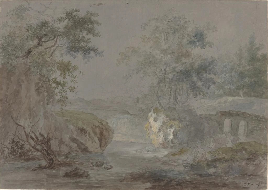 Scogliere boscose lungo una riva - Johann Caspar Huber