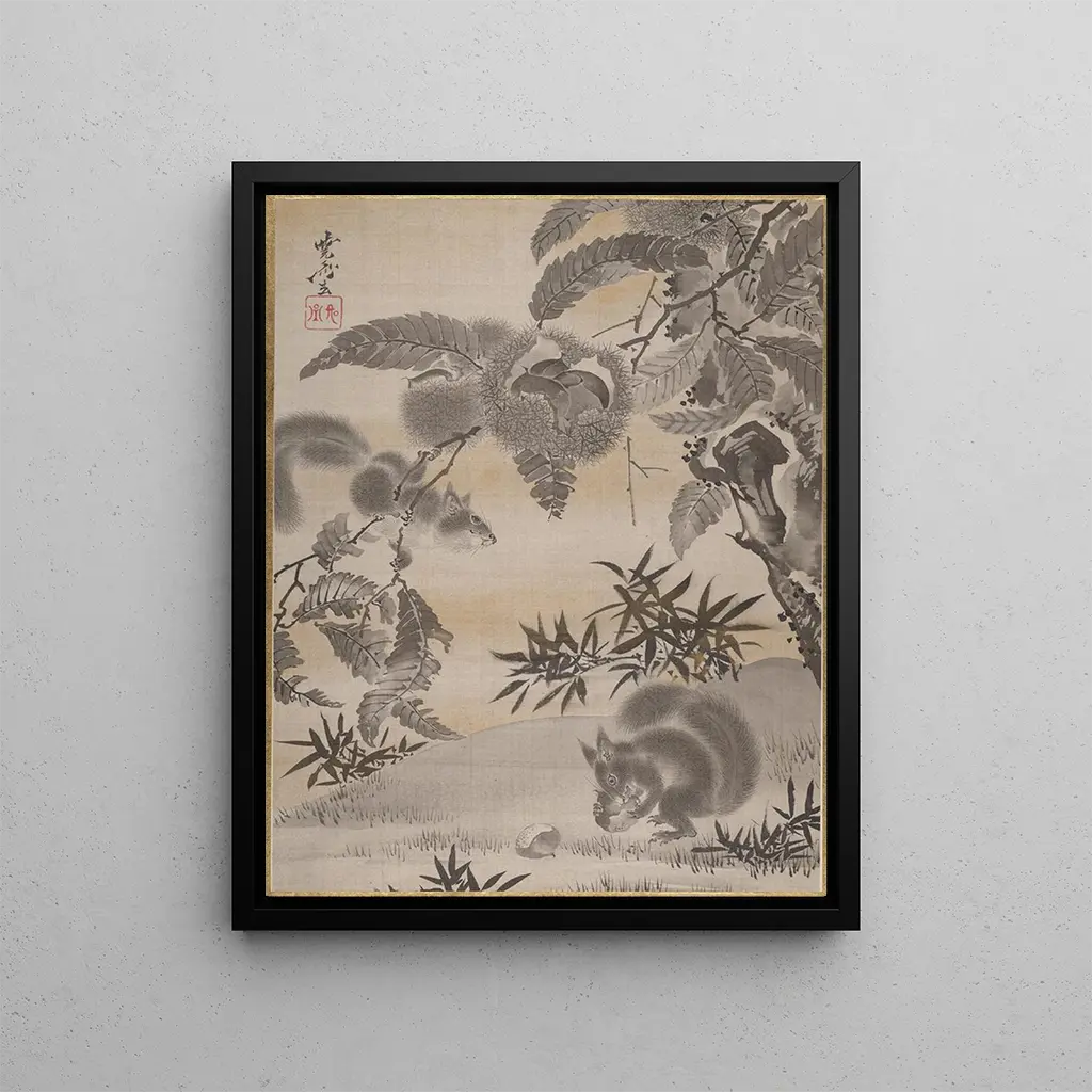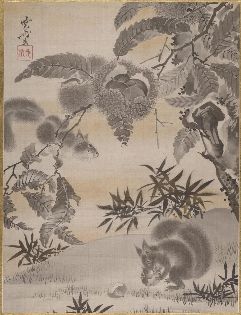 Riccioli d'acero che raccolgono castagne - Kawanabe Kyōsai