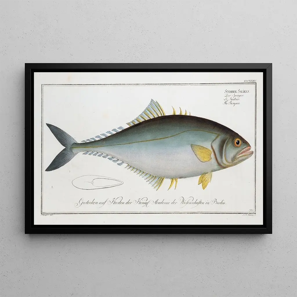 La riproduzione di "Scomber saliens, il saltatore" è una scelta decorativa perfetta per aggiungere un tocco marino al vostro interno, sia in un soggiorno, una sala da pranzo o uno studio. La qualità di stampa e l'attenzione ai dettagli la rendono un pezzo attraente per gli appassionati del mare e della natura. Questa tela, con la sua estetica affascinante, si integra facilmente in vari stili di arredamento, aggiungendo un tocco di eleganza e freschezza al vostro spazio. Scegliendo quest'opera, invitate la bellezza dell'oceano nella vostra quotidianità.