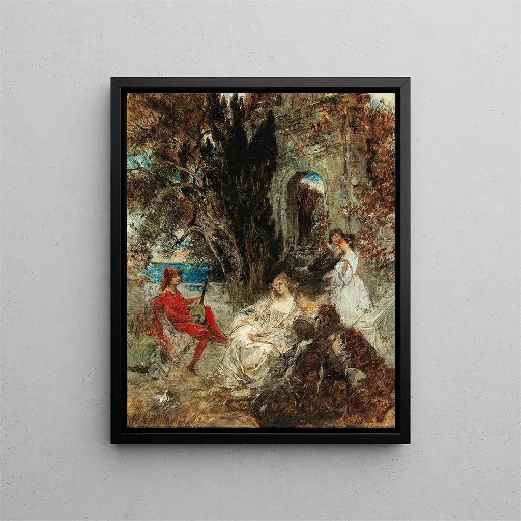 Nel vasto panorama della storia dell’arte, alcune opere si distinguono per la loro capacità di catturare istanti di bellezza ed emozione. "Sérénade - Eduard Veith" è una di queste creazioni che ci trasporta in un universo dove la melodia dei colori e delle forme si intrecciano per evocare un’atmosfera allo stesso tempo dolce e incantata. Quest’opera, intrisa di romanticismo, evoca una scena intima dove la musica sembra elevarsi dalle tele per avvolgere lo spettatore. Contemplando questa stampa d'arte, si percepisce quasi l’eco delle note di una serenata, un invito alla rêverie e alla contemplazione.