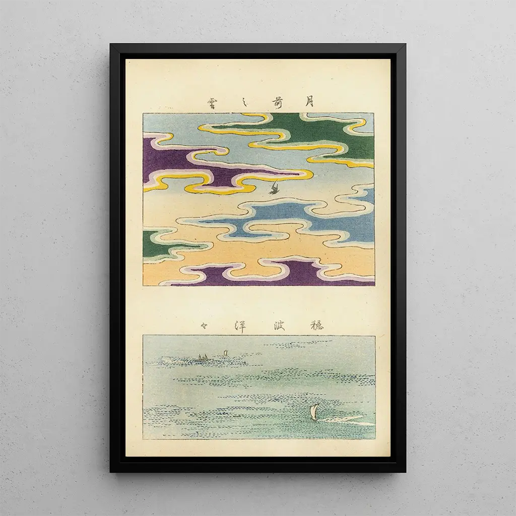 La riproduzione di Shin zuan Pl 2 evoca un'atmosfera pacifica, dove le sfumature di blu e verde si intrecciano per creare una scena intrisa di serenità. La tecnica della stampa d'arte, tipica dell'arte giapponese, si rivela nei dettagli minuziosi e nelle texture delicate. Ogni elemento della composizione sembra raccontare una storia, invitando lo spettatore a immergersi in un mondo di contemplazione. Le forme organiche e i motivi floreali, caratteristici di quest'opera, offrono una sensazione di movimento e vitalità, pur mantenendo un'eleganza senza tempo.