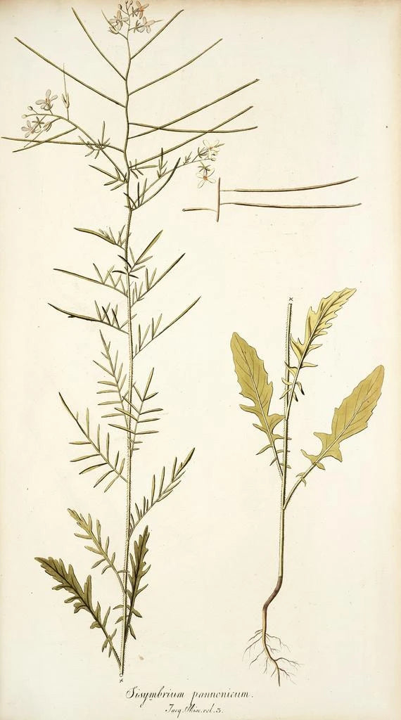La stampa d'arte Sisymbrium pannonicum di Nikolaus Joseph Freiherr von Jacquin rivela una bellezza selvaggia attraverso i suoi tratti sottili e i suoi colori vibranti. Questo quadro mette in evidenza la pianta nella sua intera magnificenza, con sfumature di verde e tocchi di giallo che evocano la ricchezza delle praterie. La tecnica dell'acquerello, usata con maestria, conferisce leggerezza all'opera, quasi come se la pianta fosse in movimento. L'atmosfera che emana da questa tela è allo stesso tempo vivace e serena, invitando a un'immersione nella natura.