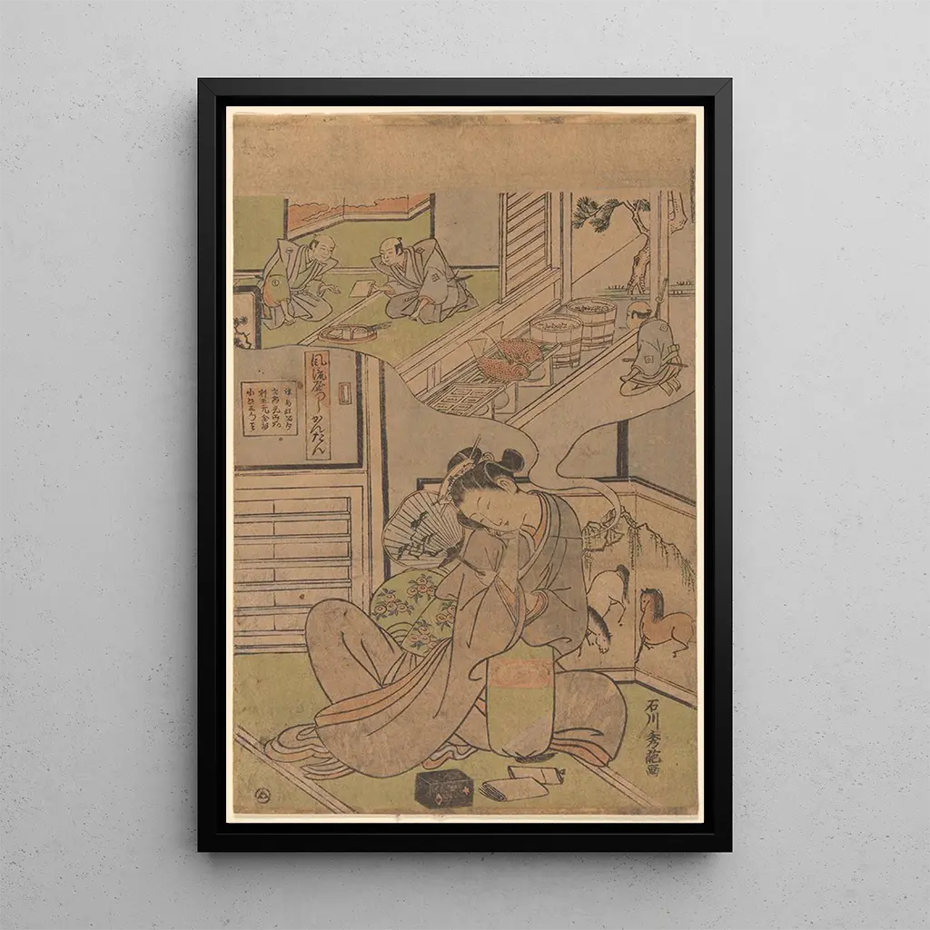 Quadro Rêve de jeunes geishas - Ishikawa Toyonobu | Stampa d'arte