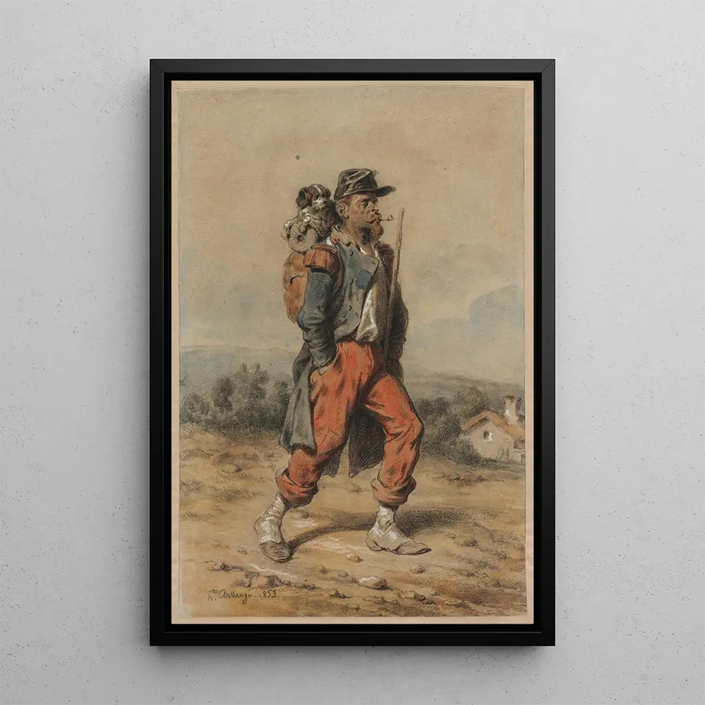In questa opera impressionante, il quadro "Soldato con cane" di Hippolyte Bellangé cattura l'essenza stessa del valore e della fedeltà. La composizione mette in evidenza un soldato in uniforme, il suo sguardo determinato fisso sull'orizzonte, mentre ai suoi piedi si trova un cane dagli occhi pieni di devozione. I colori caldi e terrosi, mescolati a tocchi di luce, creano un'atmosfera al tempo stesso nostalgica ed eroica. La tecnica di Bellangé, che mescola realismo e romanticismo, dà vita a questa scena, evocando emozioni profonde e una connessione indissolubile tra l'uomo e il suo compagno.