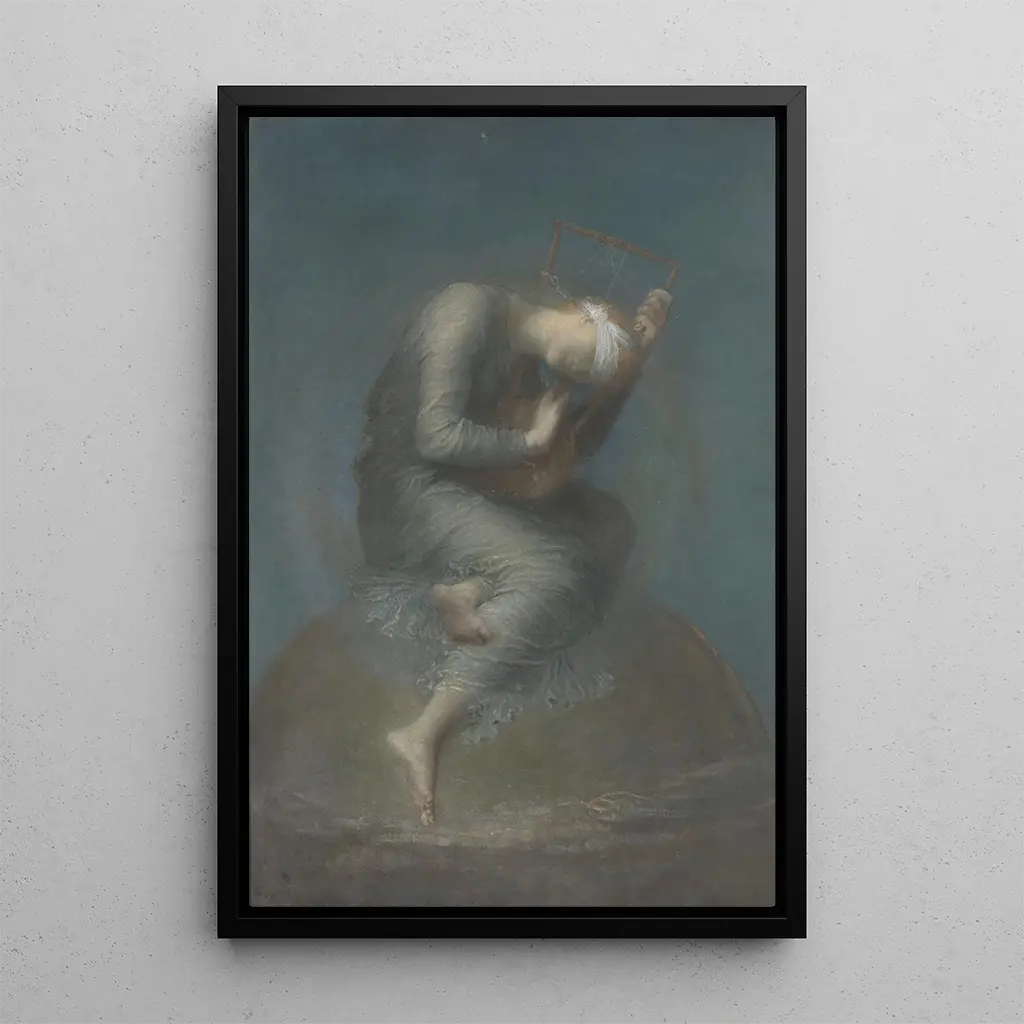 In questa tela "Espoir", George Frederic Watts cattura l'essenza stessa dell'aspirazione umana. Quest'opera, intrisa di simbolismo, raffigura una figura femminile delicata, con gli occhi chiusi, che tiene una lira, simbolo di musica e armonia. I colori morbidi e le sfumature pastello creano un'atmosfera serena, quasi eterea, mentre lo sfondo scuro accentua la luminosità della protagonista. La tecnica di Watts, che combina pittura ad olio e dettagli minuziosi, invita lo spettatore a una contemplazione introspettiva, rivelando le lotte e le speranze che abitano ciascuno di noi.