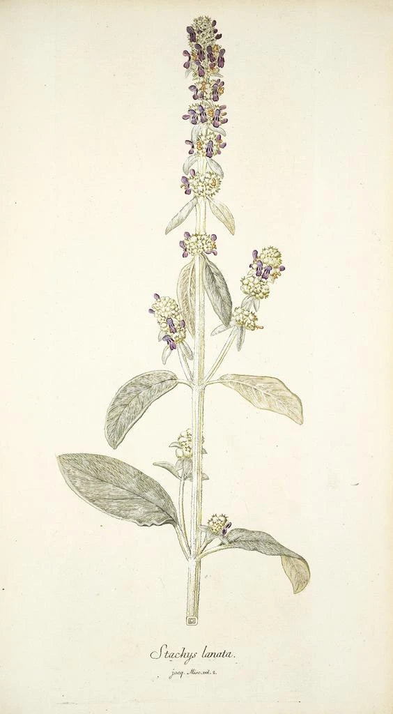 Nikolaus Joseph Freiherr von Jacquin, botanico e artista del XVIII secolo, ha segnato la sua epoca con i suoi contributi alla scienza e all'arte. I suoi viaggi attraverso l'Europa e le colonie hanno arricchito le sue conoscenze e la sua opera, permettendogli di documentare specie vegetali rare ed esotiche. Stachys lanata è un esempio perfetto del suo approccio meticoloso e del desiderio di condividere la bellezza della natura con un vasto pubblico. In qualità di membro influente della comunità scientifica, Jacquin ha aperto la strada a future generazioni di artisti e botanici.