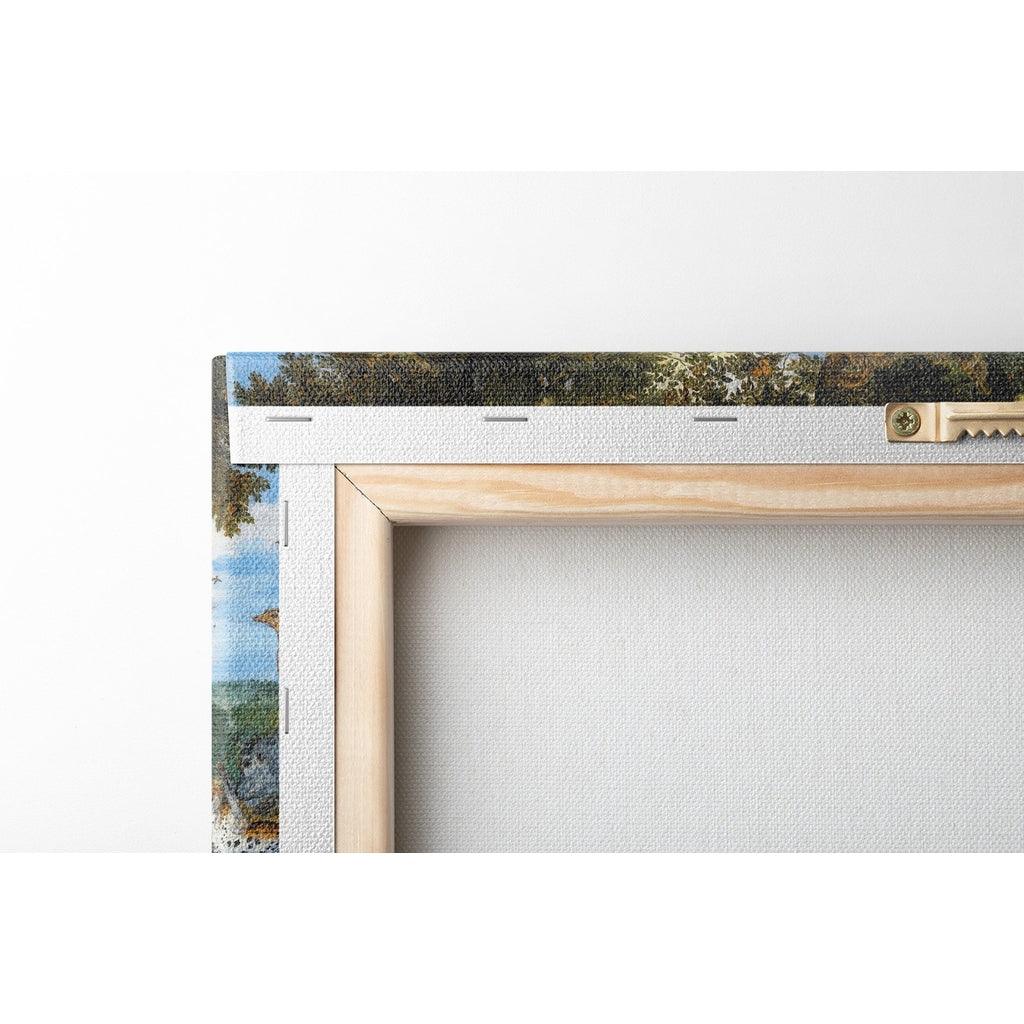 Tela, impression rendu mat, montée sur une structure en bois, prête à suspendre. Options d'encadrement disponibles sur certains formats.