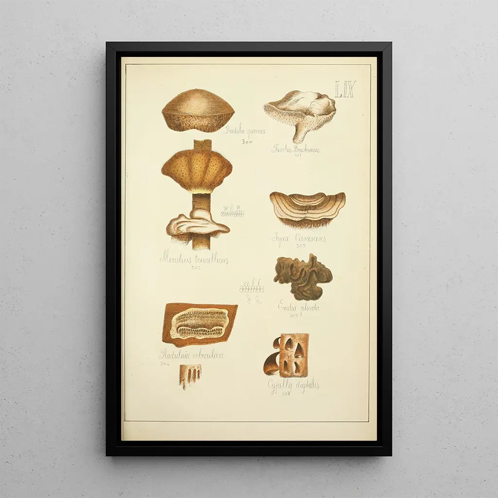 L'opera "Storia naturale dei funghi Pl59" di Guillaume Sicard si distingue per la sua rappresentazione minuziosa e colorata della micologia. Ogni fungo è illustrato con una precisione notevole, mettendo in evidenza la diversità di forme e tonalità che popolano il nostro ambiente. Le sfumature delicate di colori, che vanno dai gialli luminosi ai marroni terrosi, creano un'atmosfera vivace e dinamica. Questa stampa d'arte, in quanto quadro, invita a un'esplorazione visiva delle meraviglie nascoste della natura, celebrando l'armonia tra arte e scienza.