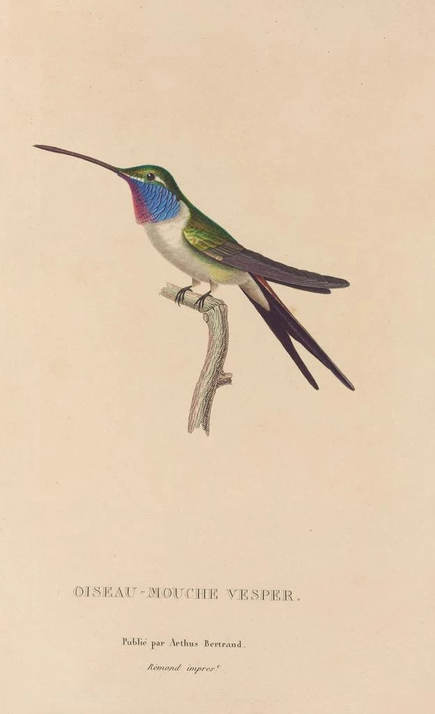 René Primevère Lesson, naturalista e illustratore del XIX secolo, ha svolto un ruolo cruciale nello studio e nella rappresentazione degli uccelli. Il suo lavoro si inserisce nel movimento scientifico del suo tempo, dove l'osservazione minuziosa della natura era essenziale. Influenzato dalle scoperte del suo tempo, ha saputo unire arte e scienza, rendendo le sue opere non solo estetiche ma anche informative. "Storia naturale dei colibrì" è una delle numerose contribuzioni di Lesson che testimoniano il suo impegno verso la conservazione e la comprensione della biodiversità aviaria.