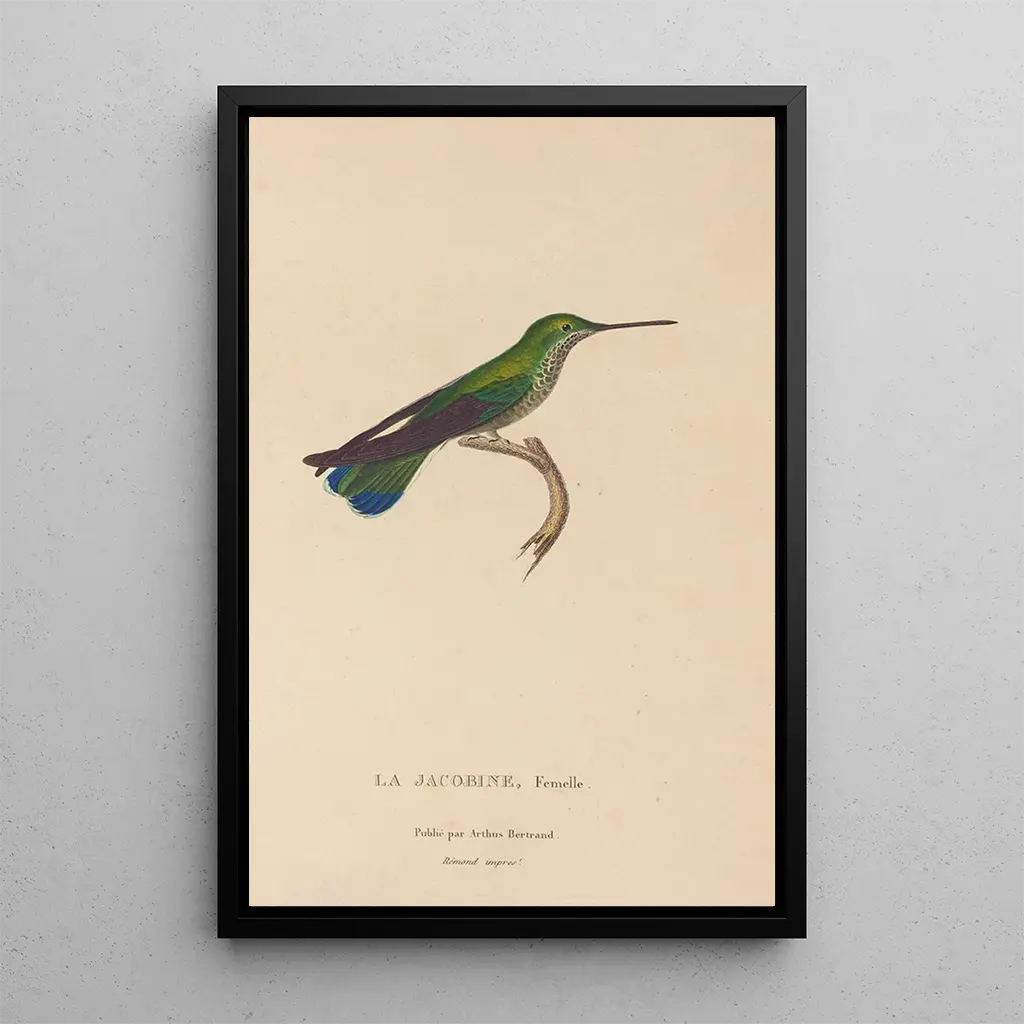 Storia naturale dei colibrì Pl22: un ballet di colori e forme L'opera "Storia naturale dei colibrì Pl22" di René Primevère Lesson si distingue per il suo splendore e la sua ricchezza cromatica. Ogni uccello è rappresentato con una precisione minuziosa, mettendo in evidenza la diversità delle specie e la bellezza dei loro piumaggi. Le sfumature vivaci e i dettagli raffinati creano un'atmosfera dinamica, quasi vivente, dove si può quasi sentire il sussurro delle ali. Questa stampa d'arte invita a un'esplorazione visiva, rivelando le sottigliezze della natura e la magia dei colibrì, veri gioielli del regno animale. René Primevère Lesson: l'arte al servizio della scienza René Primevère Lesson, figura emblematica del XIX secolo, ha saputo unire la sua passione per l'ornitologia al suo talento artistico. Le sue opere, tra cui "Storia naturale dei colibrì", testimoniano un'epoca in cui scienza e arte si univano per celebrare la natura. Influenzato dalle esplorazioni scientifiche del suo tempo, ha dedicato la sua carriera allo studio e alla rappresentazione degli uccelli, contribuendo così a una migliore comprensione della biodiversità. Il suo lascito perdura attraverso le sue illustrazioni, che continuano a ispirare gli amanti della natura e dell'arte. Un acquisto decorativo con molteplici vantaggi La riproduzione di "Storia naturale dei colibrì Pl22" è un pezzo decorativo che arricchirà qualsiasi spazio, che si tratti di un soggiorno, di un ufficio o di una camera da letto. La sua qualità di stampa eccezionale garantisce fedeltà ai colori e ai dettagli dell'opera originale, portando un tocco di raffinatezza e natura nel vostro interno. Scegliendo questa tela, optate per un'opera che non solo abbellisce il vostro arredamento, ma che evoca anche la bellezza e la diversità del mondo naturale, creando così un'atmosfera rilassante e ispiratrice.