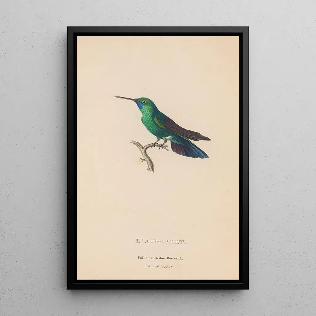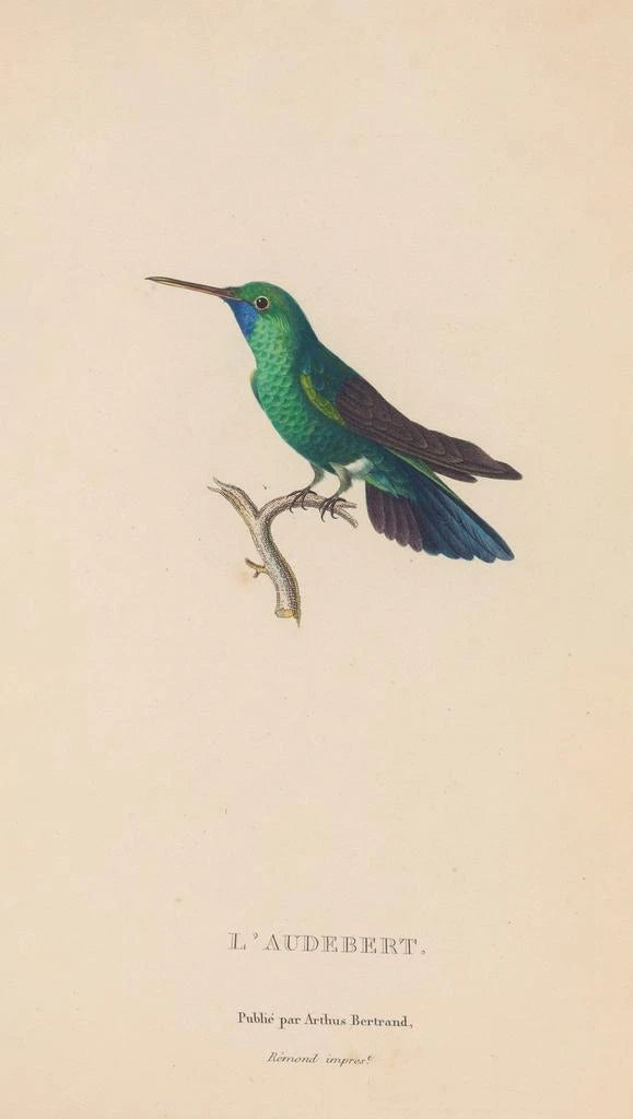 René Primevère Lesson, naturalista e ornithologo del XIX secolo, ha saputo unire scienza e arte nelle sue opere. Attivo in un periodo in cui lo studio degli uccelli conosceva un grande sviluppo, è stato influenzato dalle scoperte dei suoi contemporanei e dalle esplorazioni botaniche e zoologiche. Il suo lavoro ha contribuito ad arricchire la conoscenza delle specie aviari, presentandole in modo artistico. Lesson ha saputo catturare l'essenza stessa di questi colibrì, facendo delle sue stampe d'arte dei riferimenti sia scientifici che estetici. La sua eredità perdura, testimonianza dell'importanza dell'osservazione accurata e della rappresentazione fedele della natura.
