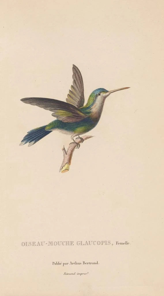 René Primevère Lesson, naturalista e illustratore del XIX secolo, ha saputo unire scienza e arte con maestria. Operando in un'epoca in cui lo studio delle specie era in pieno sviluppo, è stato influenzato dalle scoperte del suo tempo e dai viaggi di esplorazione che hanno ampliato gli orizzonti della conoscenza. Le sue opere, in particolare quelle dedicate agli uccelli, testimoniano di una rigorosa scientificità unita a una sensibilità artistica. Lesson ha contribuito alla documentazione delle specie esotiche, diventando una figura imprescindibile nel campo dell’ornitologia. Le sue illustrazioni, come quella di Storia naturale delle colibrì Pl60, sono diventate riferimenti per gli appassionati d'arte e di natura.