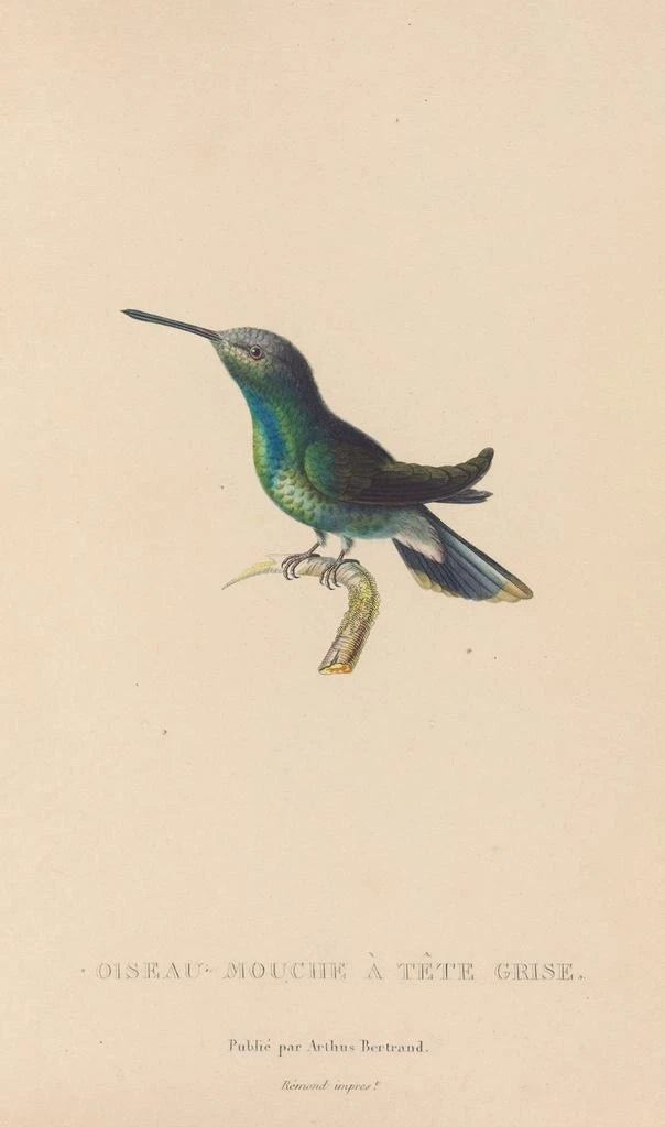 René Primevère Lesson, attivo nel XIX secolo, ha svolto un ruolo fondamentale nell'illustrazione ornitologica. In qualità di ornitologo, è stato influenzato dai progressi scientifici del suo tempo, cercando di catturare la bellezza degli uccelli documentandoli allo stesso tempo. Il suo lavoro, in particolare attraverso "Storia naturale dei colibrì Pl63", testimonia una passione per la natura e un desiderio di trasmettere le sue conoscenze attraverso l'arte. Questa opera è emblematica del suo approccio, unendo rigore scientifico e sensibilità estetica.