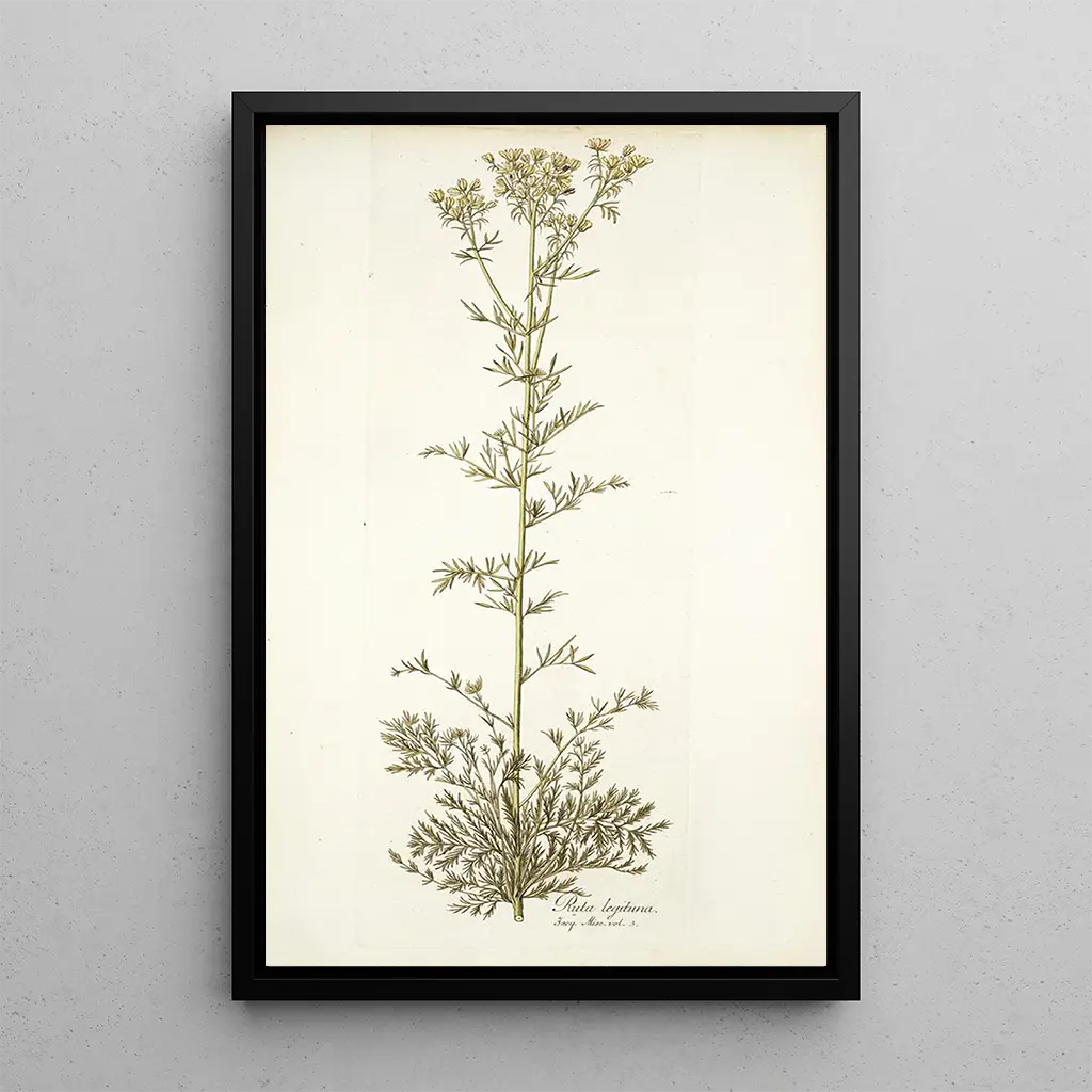 Ruta legitima : un viaggio nel cuore delle piante medicinali La stampa d'arte di Ruta legitima, opera emblematica di Nikolaus Joseph Freiherr von Jacquin, ci trasporta nell'universo affascinante delle piante medicinali. Questa illustrazione, ricca di dettagli, mette in evidenza le foglie e i fiori della ruta, una pianta dalle virtù riconosciute fin dall'antichità. Le tonalità verdi vibranti e i tocchi di giallo illuminano la composizione, creando un'atmosfera al tempo stesso rilassante e rivitalizzante. La tecnica dell'acquarello, padroneggiata da Jacquin, permette di catturare la delicatezza delle forme e la trasparenza dei colori, invitando lo spettatore a esplorare la bellezza della natura sotto un'angolazione scientifica e artistica. Nikolaus Joseph Freiherr von Jacquin: un maestro della botanica artistica Nikolaus Joseph Freiherr von Jacquin, nato nel 1727, è riconosciuto come uno dei pionieri della stampa d'arte botanica nel XVIII secolo. I suoi viaggi in America e i suoi studi approfonditi delle piante esotiche hanno arricchito le sue conoscenze e la sua opera. Influenzato dai movimenti scientifici del suo tempo, Jacquin ha saputo unire rigore ed estetica, producendo illustrazioni che sono allo stesso tempo opere d'arte e documenti scientifici preziosi. Ruta legitima, come altre sue creazioni, testimonia il suo impegno a promuovere la conoscenza delle piante e la loro importanza nella medicina tradizionale. Una proposta decorativa con molteplici vantaggi La stampa d'arte di Ruta legitima è un pezzo decorativo che saprà abbellire il vostro interno, portando un tocco di natura. Che sia in un soggiorno, in uno studio o in una camera da letto, questa tela si integra armoniosamente con diversi stili di arredamento. La qualità di stampa e la fedeltà all'opera originale garantiscono un risultato visivo coinvolgente. Scegliendo questa tela, optate per una decorazione che richiama sia la bellezza della botanica sia la storia delle piante medicinali. È un'opera che invita alla contemplazione e alla serenità, arricchendo così il vostro spazio vitale.