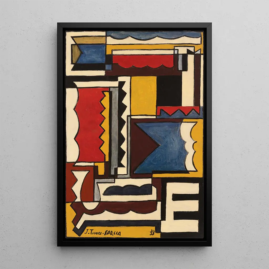 Artista uruguaiano nato nel 1874, Joaquín Torres-García è riconosciuto come uno dei precursori del costruttivismo in America Latina. La sua carriera inizia in Europa, dove è influenzato dal cubismo e dai movimenti d'avanguardia. Rientrando in Uruguay, sviluppa un'estetica unica che fonde le tradizioni artistiche locali con concetti moderni. Torres-García ha sempre cercato di esprimere una visione universale attraverso la sua arte, rendendolo una figura emblematica dell'arte moderna latino-americana. La sua opera "Struttura con forme sovrapposte" illustra perfettamente questa ricerca di armonia tra il locale e l'universale.
