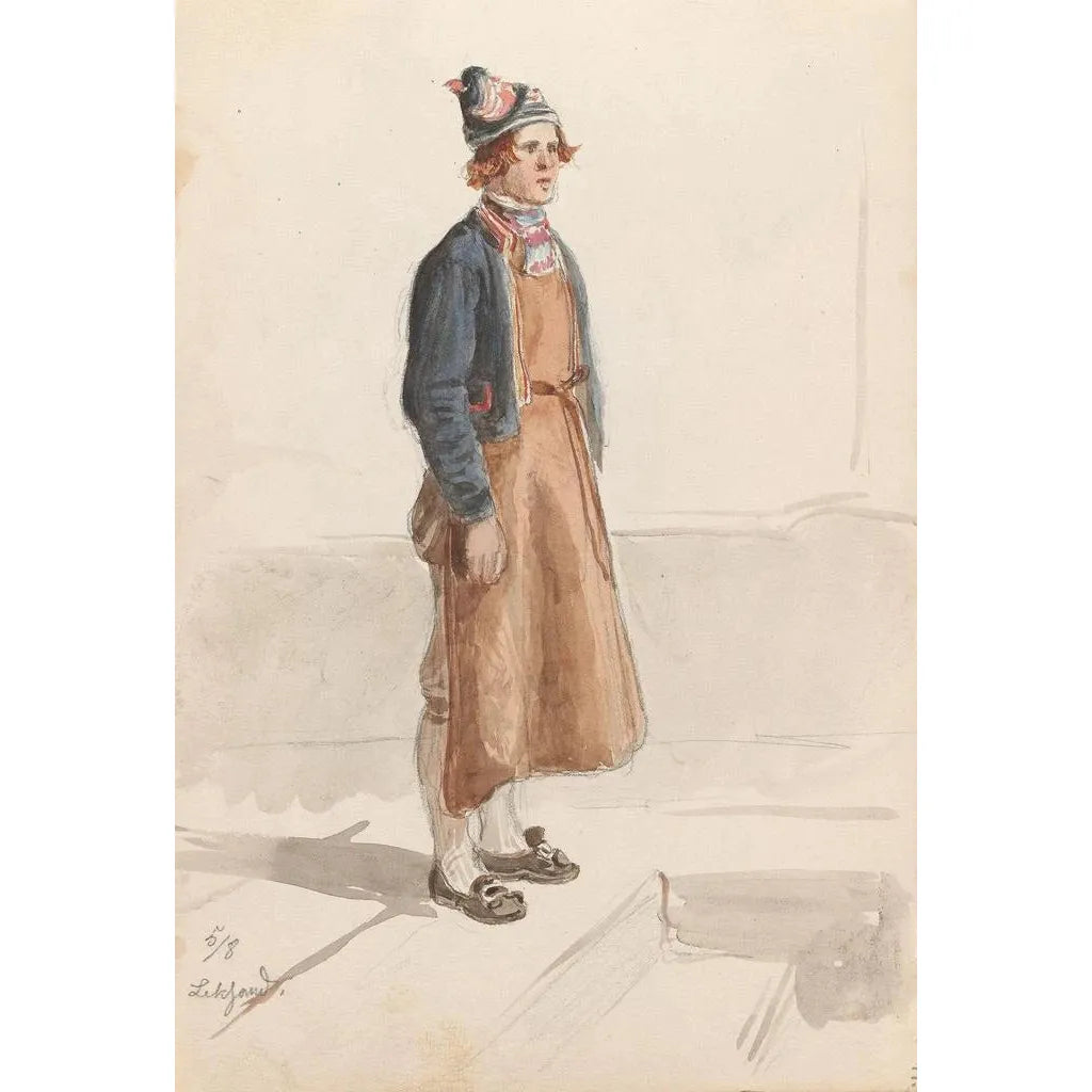 Adolph Tidemand, pittore norvegese del XIX secolo, è riconosciuto per il suo ruolo nel movimento romantico scandinavo. Influenzato dai paesaggi maestosi del suo paese natale e dalle tradizioni folkloristiche, Tidemand ha saputo catturare l'anima della Norvegia attraverso le sue opere. La sua carriera, segnata da viaggi in tutta Europa, gli ha permesso di affinare il suo stile e di integrare elementi di pittura storica. L'importanza di Tidemand risiede nella sua capacità di immortalare le usanze e le scene della vita quotidiana, facendone un testimone privilegiato della sua epoca. I suoi dipinti, come "Studio di costume Leksand", sono finestre aperte su un passato ricco e vibrante.
