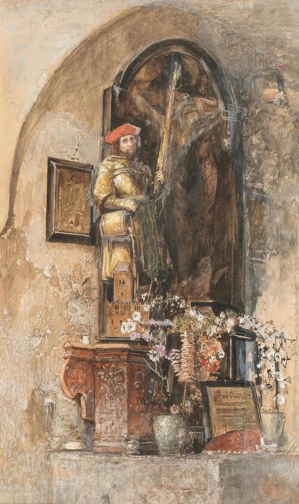 Robert Russ, pittore del XIX secolo, è riconosciuto per la sua abilità nel catturare scene della vita religiosa con una precisione notevole. Influenzato dal movimento romantico, ha saputo unire realismo e spiritualità nelle sue opere. La sua carriera, sebbene meno conosciuta di quella dei suoi contemporanei, ha segnato la sua epoca con un approccio unico alla pittura religiosa. Russ ha spesso esplorato temi legati alla fede e alla devozione, il che gli ha permesso di ritagliarsi un posto nella storia dell'arte. Le sue opere, come "Studio di un altare", testimoniano il suo impegno verso una rappresentazione autentica della spiritualità.