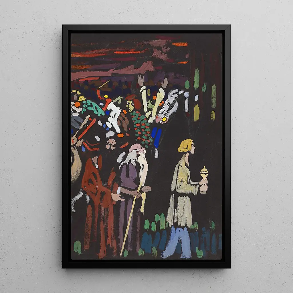 Wassily Kandinsky, figura emblematica della moderna arte, ha svolto un ruolo cruciale nell'evoluzione della stampa d'arte astratta all'inizio del XX secolo. Influenzato dal simbolismo e dal fauvismo, ha cercato di esprimere idee ed emozioni attraverso forme non rappresentative. "Étude sur la panique" testimonia il suo interesse per la psicologia e le reazioni emotive, un tema ricorrente nella sua opera. Integrando elementi di musica e spiritualità, Kandinsky ha aperto la strada a una nuova comprensione dell'arte, dove l'esperienza visiva diventa un'esplorazione interiore.