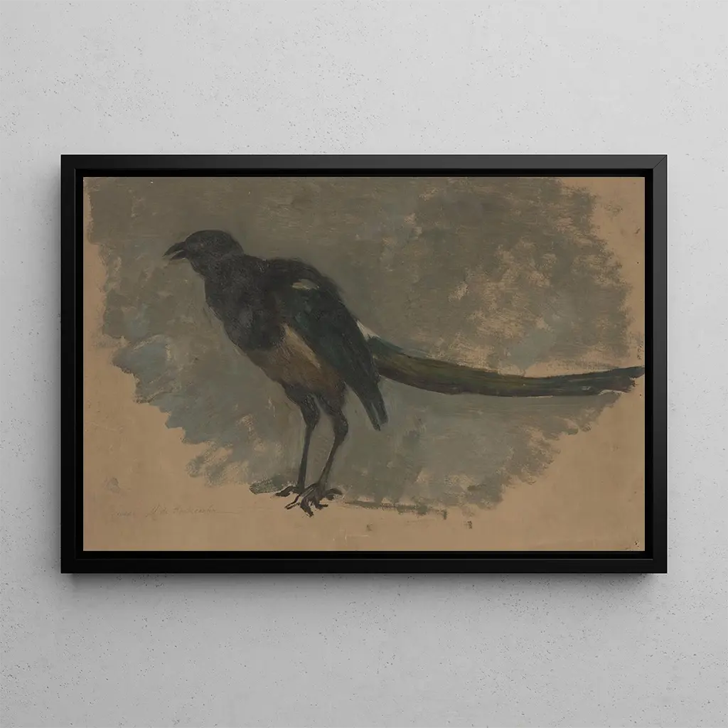 L'opera "Studio di un merlo" di August Allebé si distingue per la sua rappresentazione accurata e realistica di questo uccello. I colori vivaci e le sfumature delicate di nero e bianco catturano la luce in modo magistrale, creando un'atmosfera allo stesso tempo vivace e serena. La composizione mette in evidenza il merlo in un contesto naturale, dove ogni piuma sembra vibrante sotto lo sguardo attento dell'artista. La tecnica dell'olio su tela permette una profondità e una texture che rendono questa stampa d'arte particolarmente attraente per gli appassionati d'arte e di natura.