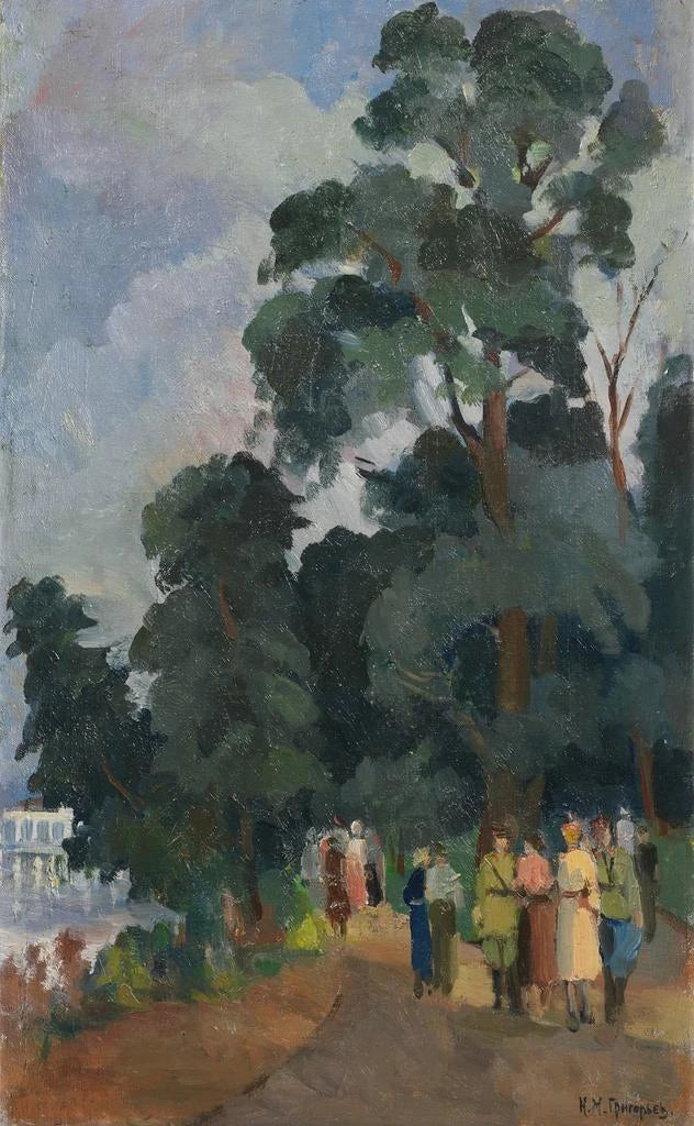 Nikolai Mikhailovich Grigoriev, attivo all'inizio del XX secolo, è riconosciuto per i suoi paesaggi che celebrano la natura russa. Influenzato dal movimento impressionista, ha saputo catturare la luce e l'atmosfera dei suoi soggetti con una sensibilità unica. Grigoriev si è formato all'Accademia delle belle arti di San Pietroburgo, dove ha sviluppato il suo stile distintivo. La sua opera si colloca in un'epoca in cui gli artisti cercavano di esprimere emozioni attraverso la natura, rendendolo una figura importante nell'evoluzione della pittura paesaggistica in Russia. I suoi dipinti, come "Au bord de l'étang", testimoniano questa ricerca di armonia tra l'uomo e il suo ambiente.
