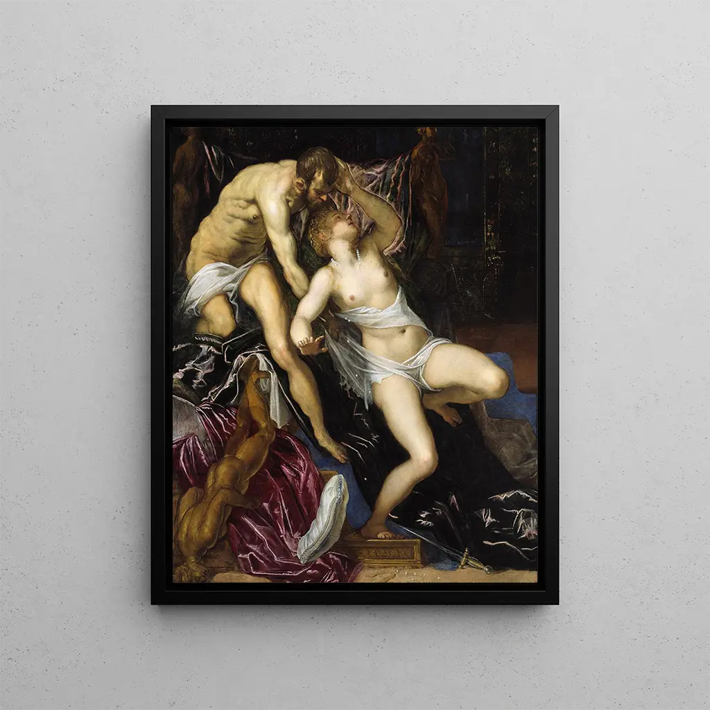 Scopri questa straordinaria opera di Jacopo Tintoretto, raffigurante Tarquin e Lucrezia. Questa pittura, ricca di dettagli e intensità emotiva, è un esempio perfetto del Rinascimento veneziano. Perfetta per gli appassionati d'arte e i collezionisti che desiderano aggiungere un capolavoro alla propria collezione.