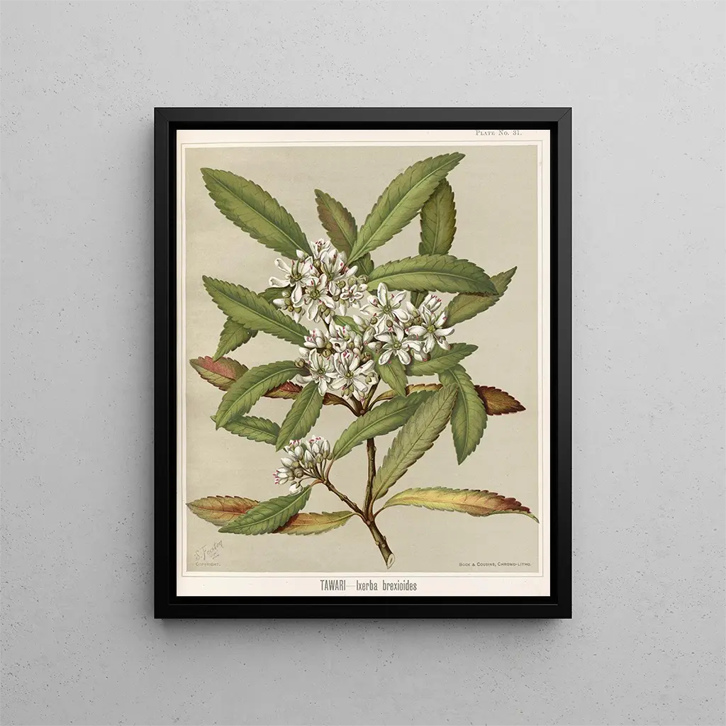 L'opera 'Tawari Ixerba brexioides' di Sarah Featon mette in evidenza un albero neozelandese, noto per la sua bellezza e rarità. Featon, come artista botanico, riesce a catturare la maestà di questo albero con particolare attenzione ai dettagli e all'estetica. Questa illustrazione, che unisce precisione scientifica e sensibilità artistica, evoca i legami tra natura e arte, celebrando al contempo la ricchezza della flora locale. In un ambiente moderno, questa stampa d'arte può portare un tocco di serenità e connessione con l'ambiente naturale. La stampa d'arte di questa opera è disponibile su Artem Legrand.