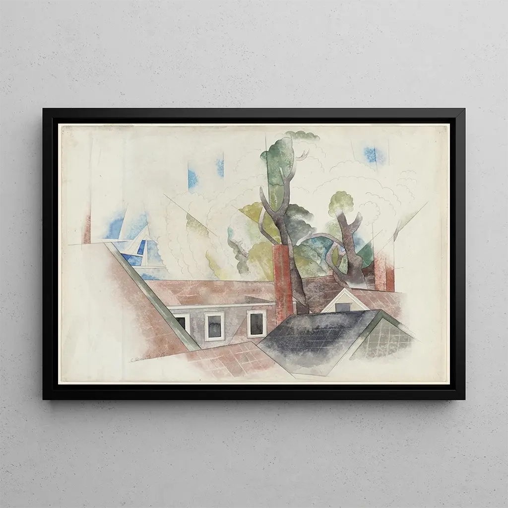 La stampa d'arte di "Toits et arbres" è un'aggiunta perfetta alla tua decorazione d'interni, che si tratti di un soggiorno, di un ufficio o di una camera da letto. La qualità di stampa garantisce una fedeltà notevole alle sfumature e ai dettagli dell'opera originale, portando un tocco di raffinatezza nel tuo spazio. Questo quadro evoca un'atmosfera di calma e serenità, invitando alla contemplazione e alla rêverie. Integrando questa tela nel tuo ambiente, crei un ambiente ispirante che celebra l'armonia tra natura e architettura, rendendo omaggio all'eredità artistica di Charles Demuth.