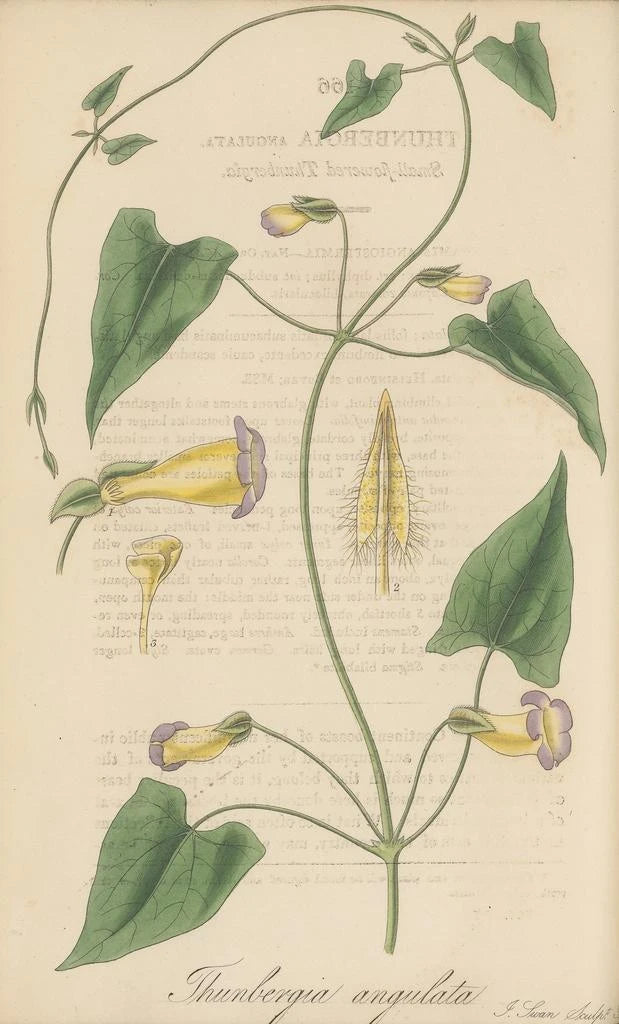 William Jackson Hooker, figura emblematica del XIX secolo, ha saputo unire scienza e arte nelle sue illustrazioni botaniche. Il suo lavoro si inserisce in un periodo di grande esplorazione e scoperta di piante esotiche, dove ogni illustrazione serviva a educare e meravigliare il pubblico. Influenzato dai movimenti artistici del suo tempo, Hooker ha sviluppato uno stile unico che combina precisione scientifica e sensibilità estetica. Thunbergia angulata è una delle sue opere che testimonia il suo impegno nella botanica e nell'arte.