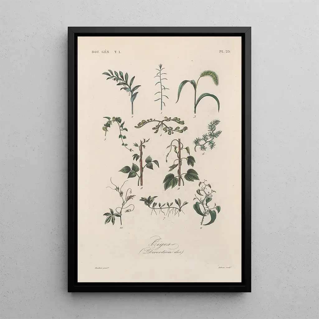 In questa riproduzione del quadro Traité de botanique générale Pl025, François Hérincq ci invita a immergerci in un mondo in cui botanica e arte si incontrano. I dettagli minuziosi delle piante, i colori vibranti e la composizione armoniosa creano un'atmosfera rilassante e contemplativa. Ogni elemento della tela sembra respirare vita, rivelando la bellezza intrinseca della natura. La tecnica dell'artista, che unisce precisione scientifica e sensibilità artistica, ci trasporta in un universo in cui ogni foglia e ogni fiore raccontano una storia.