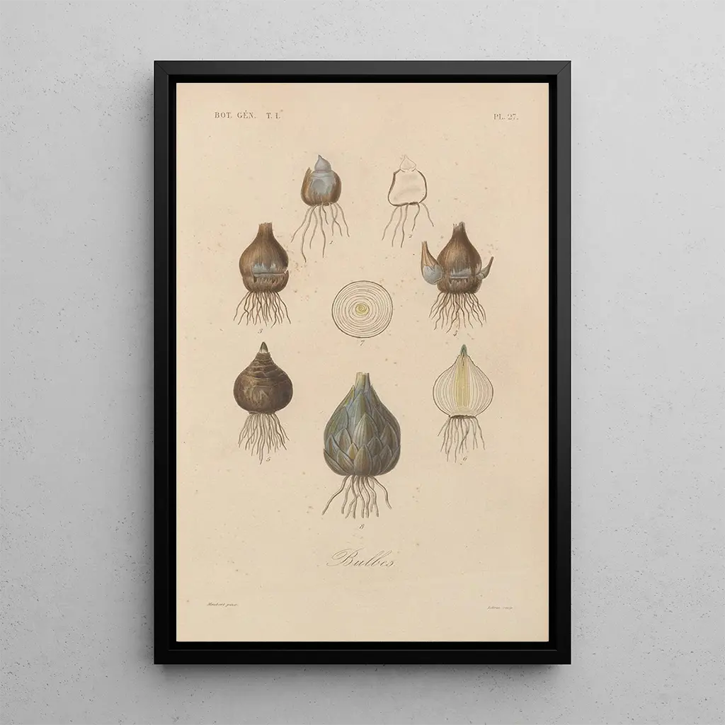 In questa stampa d'arte del quadro Traité de botanique générale Pl027, François Hérincq ci invita a immergerci in un universo ricco di colori e dettagli. La composizione delicata mette in evidenza una varietà di piante, ognuna rappresentata con cura e attenzione minuziosa alle sfumature e alle texture. Le tonalità vibranti di verde, giallo e rosa si mescolano armoniosamente, creando un'atmosfera al tempo stesso rilassante e stimolante. La tecnica dell'acquarello, usata con maestria, permette di catturare la leggerezza e la fragilità delle vegetali, offrendo al contempo una profondità visiva che cattura lo sguardo e invita alla contemplazione.
