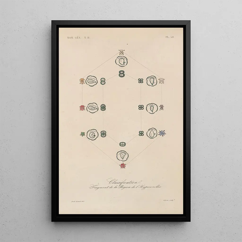 La riproduzione del 'Traité de botanique générale Pl101' è un pezzo decorativo che saprà abbellire qualsiasi spazio, che si tratti di un salotto, di un ufficio o di una camera da letto. La qualità di stampa e la fedeltà dei colori ne fanno una scelta perfetta per chi desidera aggiungere un tocco di natura al proprio interno. L'attrattiva estetica di questa tela risiede nella sua capacità di trasformare un muro in una galleria d'arte botanica. Optando per questa opera, fai la scelta di una decorazione raffinata che evoca la bellezza e la diversità del mondo vegetale.