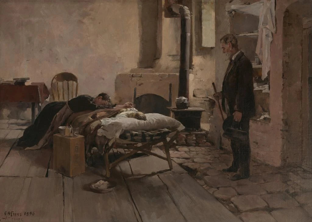 Dans "Trop tard", Charles Arthur Fries capture un moment d'introspection poignante, où les couleurs chaudes et les ombres délicates s'entrelacent pour créer une atmosphère de nostalgie. La composition, centrée sur une figure humaine, évoque une solitude profonde, renforcée par le choix des teintes terreuses qui plongent le spectateur dans une réflexion sur le temps qui passe. Les coups de pinceau, à la fois fluides et précis, témoignent d'une maîtrise technique qui permet à l'œuvre de respirer, tout en invitant à une contemplation silencieuse. Ce tableau, à la fois simple et complexe, nous rappelle l'importance de chaque instant.