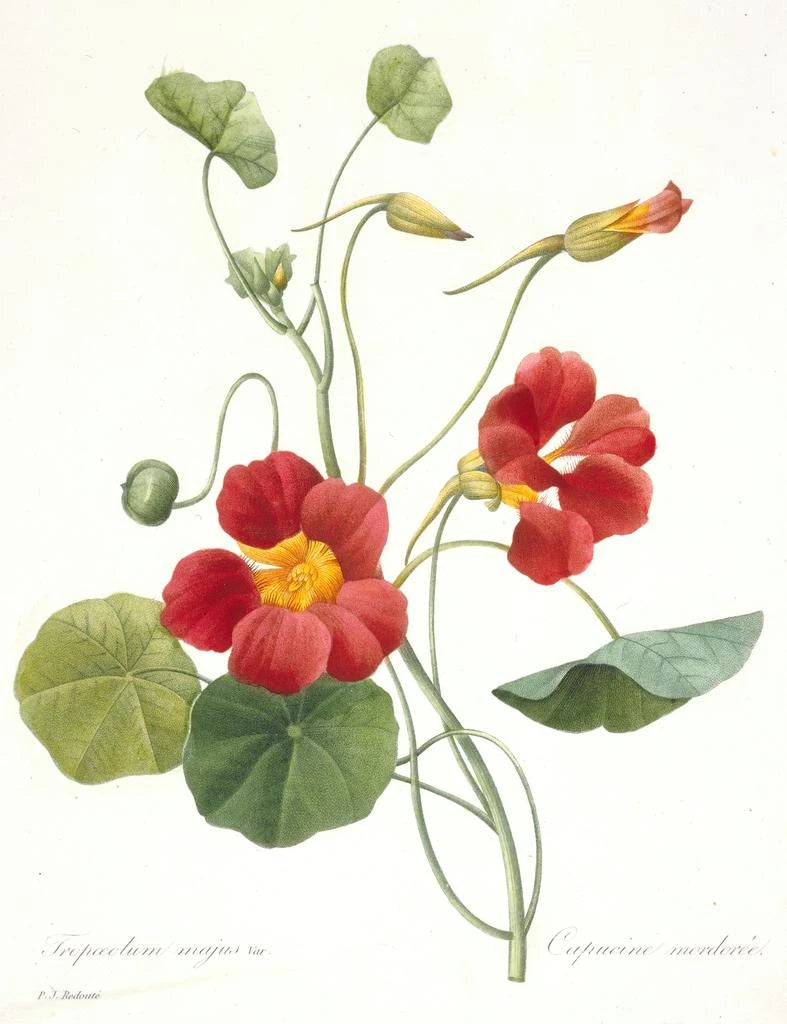 Tropaeolum grande nasturzio di giardino - Pierre Joseph Redouté