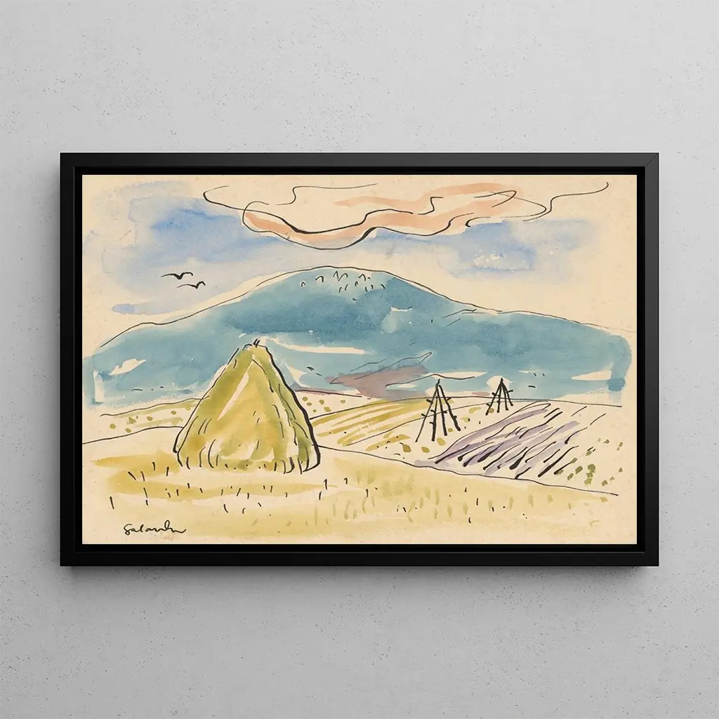 Turiec : un paesaggio intriso di serenità La tela "Turiec" di Mikuláš Galanda evoca un paesaggio di una bellezza sorprendente, dove la natura sembra sbocciare in un'armonia perfetta. I colori delicati e pastello, mescolando sfumature di verde, blu e giallo, creano un'atmosfera rilassante, quasi sognante. La tecnica dell'artista, che combina il realismo con un tocco impressionista, permette di percepire la luce filtrare attraverso le foglie, mentre le forme delle colline si delineano con delicatezza. Questo quadro invita a una contemplazione meditativa, dove ogni sguardo rivela nuove sottigliezze. Mikuláš Galanda : un pioniere dell'arte slovacca Mikuláš Galanda, figura emblematica dell'arte slovacca del XX secolo, ha saputo lasciare il segno con il suo approccio innovativo. Nato nel 1895, è stato influenzato dai movimenti artistici europei, in particolare il cubismo e l'espressionismo, integrando anche elementi della cultura slovacca. La sua opera, spesso centrata sulla natura e il paesaggio, testimonia una profonda connessione con il suo paese natale. Galanda ha svolto un ruolo cruciale nello sviluppo dell'arte moderna in Slovacchia, e le sue creazioni continuano a ispirare molti artisti contemporanei. Una riproduzione decorativa con molteplici vantaggi La riproduzione di "Turiec" è un pezzo decorativo che si integra armoniosamente in diversi spazi, che sia in un soggiorno, un ufficio o una camera da letto. La qualità di stampa e la fedeltà all'opera originale garantiscono un risultato estetico eccezionale. Questo quadro porta un tocco di serenità e natura nel vostro interno, suscitando anche l'ammirazione dei vostri ospiti. Scegliendo questa stampa d'arte, optate per un'opera che arricchisce la vostra decorazione trasmettendo una storia e un'emozione profonde.