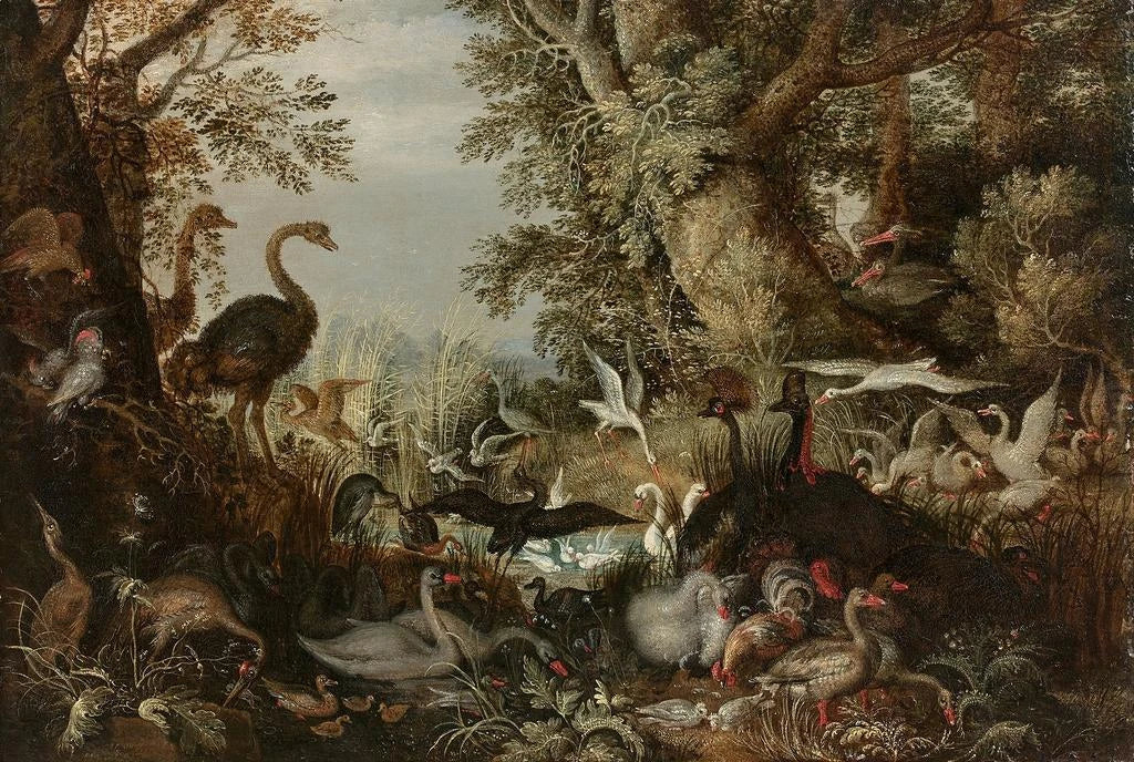 Uccelli in coppia in un paesaggio - Roelant Savery