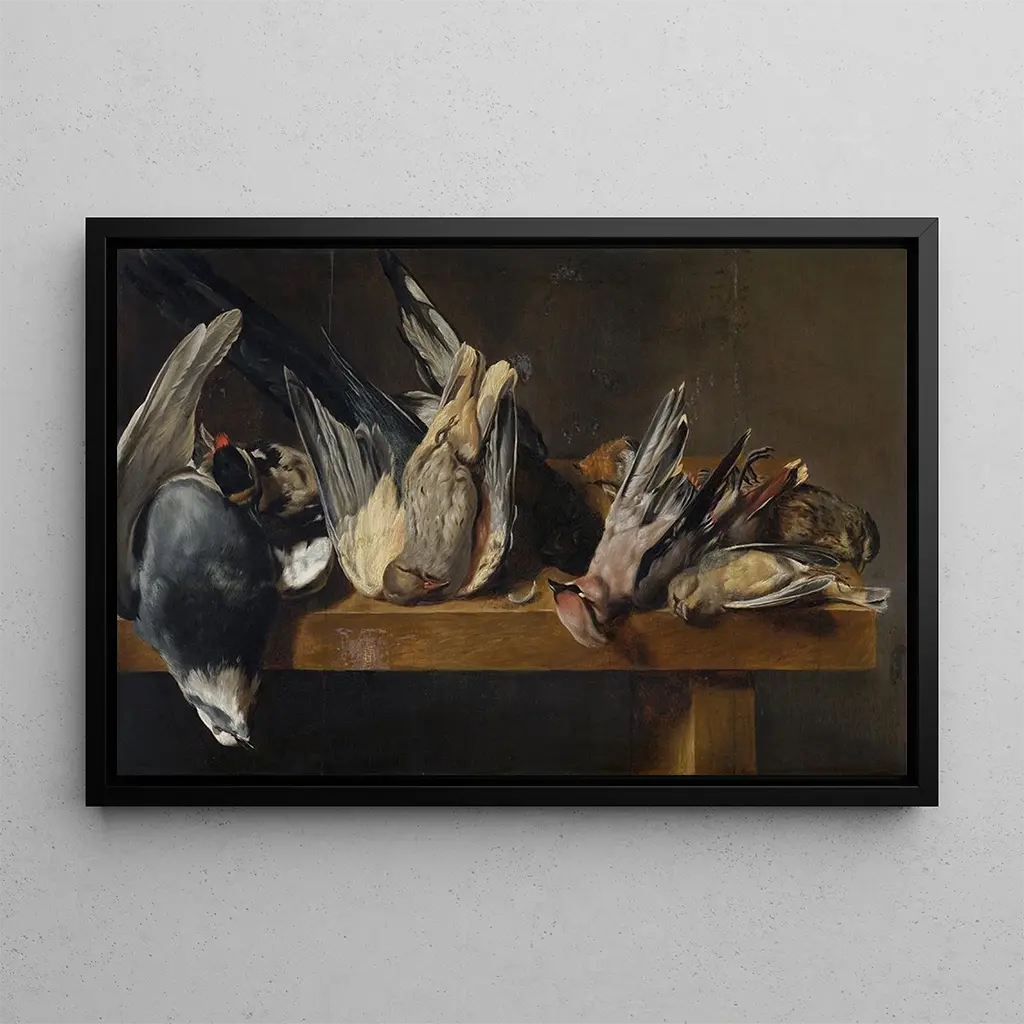 Oiseaux morts : uno studio toccante sulla natura effimera La stampa d'arte Oiseaux morts di Elias Vonck ci immerge in un universo dove la bellezza e la malinconia si incontrano. Questo quadro, ricco di dettagli, presenta una composizione accuratamente studiata di volatili, catturando la fragilità della vita. I colori scuri e terrosi, mescolati a tocchi di luce, creano un'atmosfera allo stesso tempo realistica e contemplativa. La tecnica del chiaroscuro, caratteristica dell'artista, accentua il dramma della scena, invitando lo spettatore a riflettere sulla mortalità e sulla bellezza effimera della natura. Elias Vonck : un maestro del realismo olandese Elias Vonck, attivo nel XVII secolo, è un rappresentante principale del realismo olandese. Influenzato dai maestri della sua epoca, ha saputo sviluppare uno stile unico, combinando precisione ed emozione. Le sue opere, spesso incentrate su temi di natura morta, testimoniano una grande padronanza tecnica e una sensibilità particolare verso i soggetti che sceglie. Collocando elementi della quotidianità sotto una nuova luce, Vonck ha contribuito all'evoluzione della pittura di natura morta, lasciando un'eredità artistica che continua a ispirare gli artisti contemporanei. Un acquisto decorativo con molteplici vantaggi La stampa d'arte Oiseaux morts è un pezzo decorativo ideale per arricchire il vostro interno, sia in un soggiorno, uno studio o una camera da letto. La qualità di stampa e la fedeltà ai dettagli originali ne fanno una scelta attraente per gli appassionati d'arte. Questo quadro, con la sua atmosfera allo stesso tempo cupa e poetica, saprà catturare gli sguardi e suscitare riflessioni. Integrando questa tela nella vostra decorazione, portate un tocco di eleganza e profondità nel vostro spazio, celebrando al contempo l'opera di un artista talentuoso.