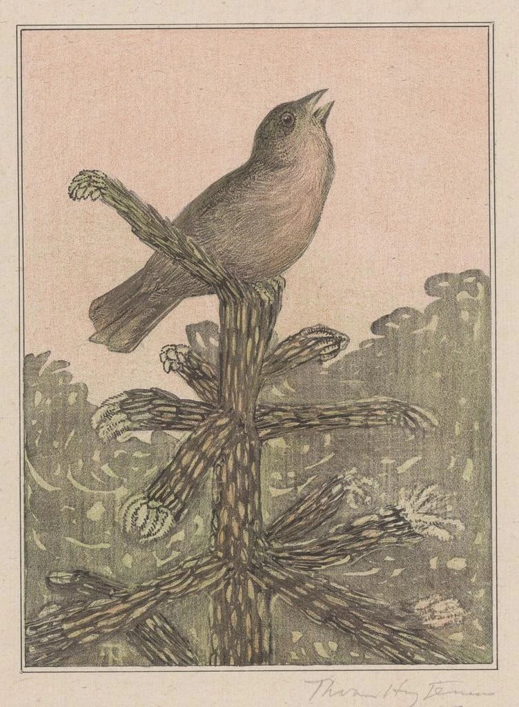Uccello canoro su un conifera - Theo van Hoytema