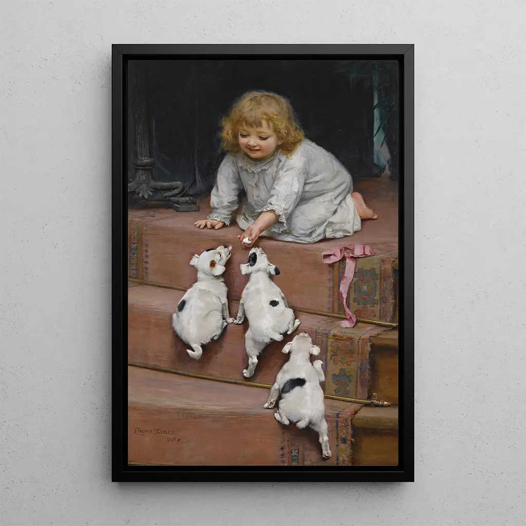 Arthur John Elsley, attivo alla fine del XIX secolo e all'inizio del XX secolo, è riconosciuto per le sue rappresentazioni toccanti della vita rurale e dei bambini. Influenzato dal movimento prerafaellita e dal realismo, è riuscito a catturare l'innocenza dell'infanzia attraverso le sue opere. I suoi dipinti, spesso centrati su temi di natura e vita quotidiana, riflettono un'epoca in cui l'industrializzazione iniziava a trasformare il paesaggio britannico. Elsley ha saputo preservare una visione nostalgica della campagna, rendendolo un artista apprezzato del suo tempo e oltre.