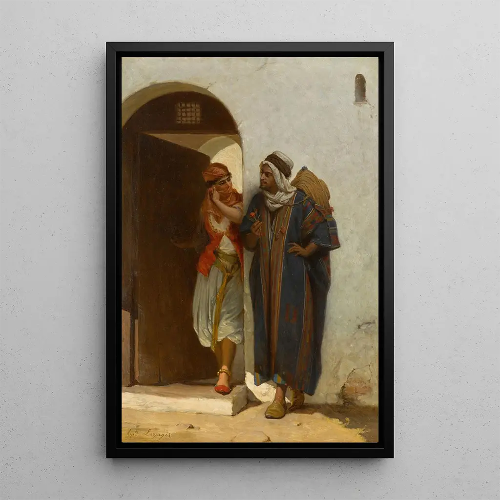 Jean-Raymond-Hippolyte Lazerges, actif au XIXe siècle, est un artiste dont le travail s'inscrit dans le mouvement réaliste. Influencé par des maîtres comme Gustave Courbet, il cherche à représenter la vie quotidienne avec une authenticité saisissante. Son œuvre se distingue par une attention minutieuse aux détails et une capacité à transmettre des émotions profondes. Lazerges a su capturer des scènes de la vie sociale de son époque, faisant de lui un témoin précieux des transformations culturelles et artistiques de son temps. "Un cadeau" s'inscrit dans cette lignée, illustrant son engagement à représenter la réalité humaine avec sensibilité.