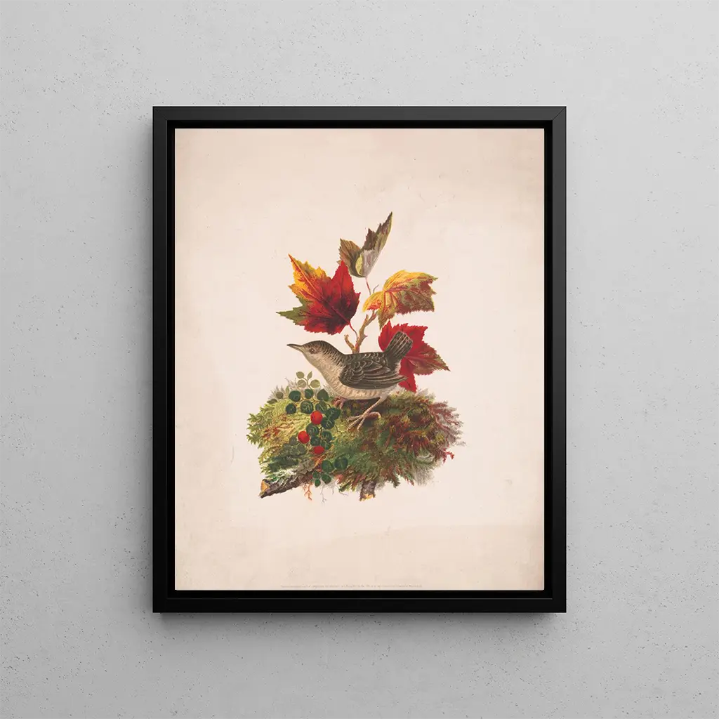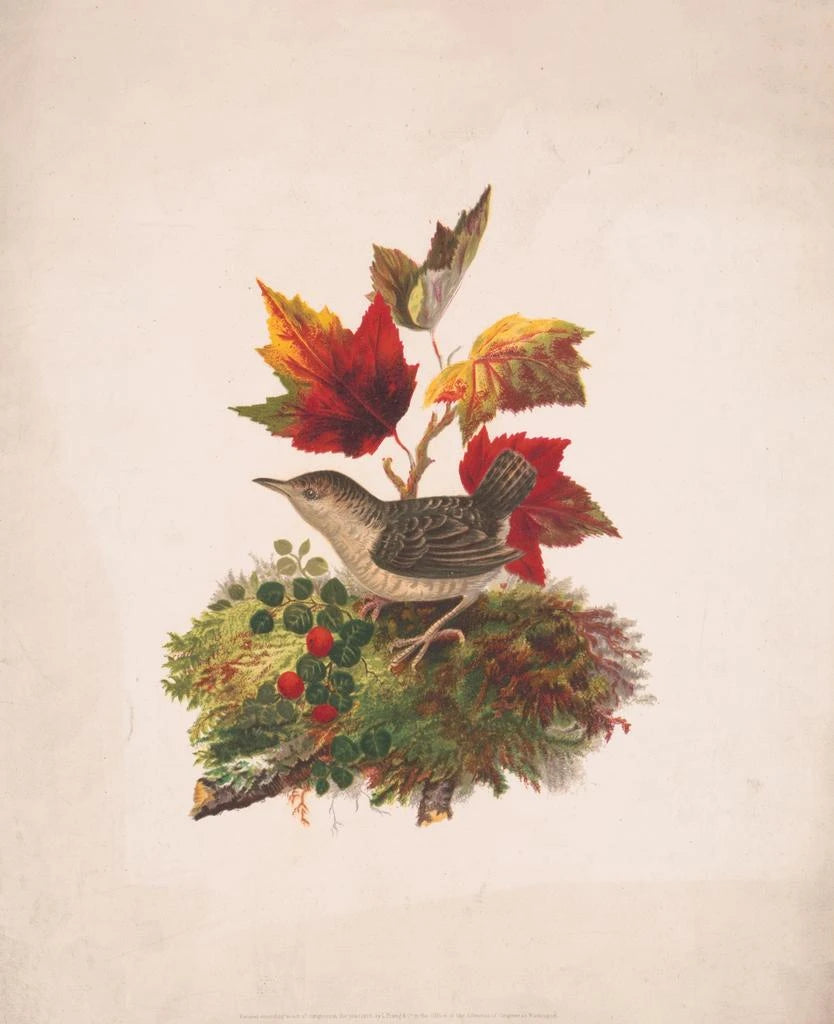 Quadro Un uccello con fogliame autunnale - Louis Prang Co | Stampa d'arte