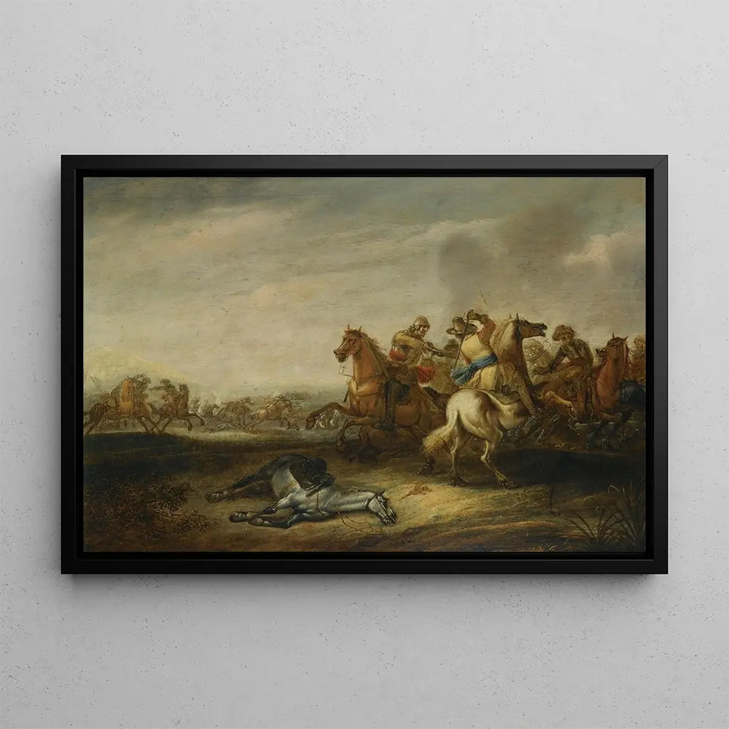Quadro Una battaglia di cavalleria - Abraham van der Hoef | Stampa d'arte