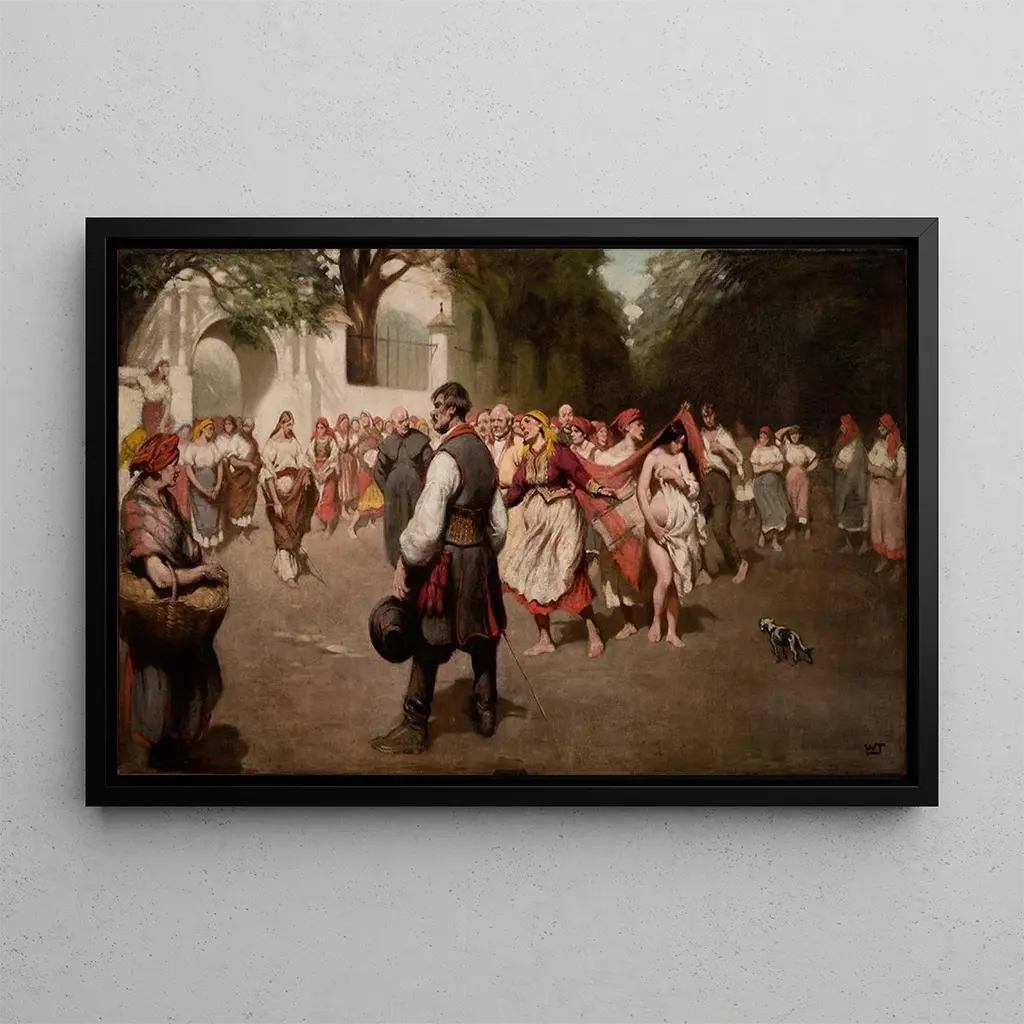 La stampa d'arte Une dévergondée de Bronowice di Włodzimierz Tetmajer immerge lo spettatore in un quadro vivente, dove gioia e malinconia si alternano. I colori vibranti e le espressioni dei personaggi catturano l'essenza della vita rurale polacca alla fine del XIX secolo. La tecnica pittorica di Tetmajer, che mescola impressionismo e realismo, conferisce una dimensione dinamica alla scena, invitando a percepire le emozioni dei protagonisti. Quest'opera è una vera ode alla vita, dove ogni dettaglio racconta una storia.