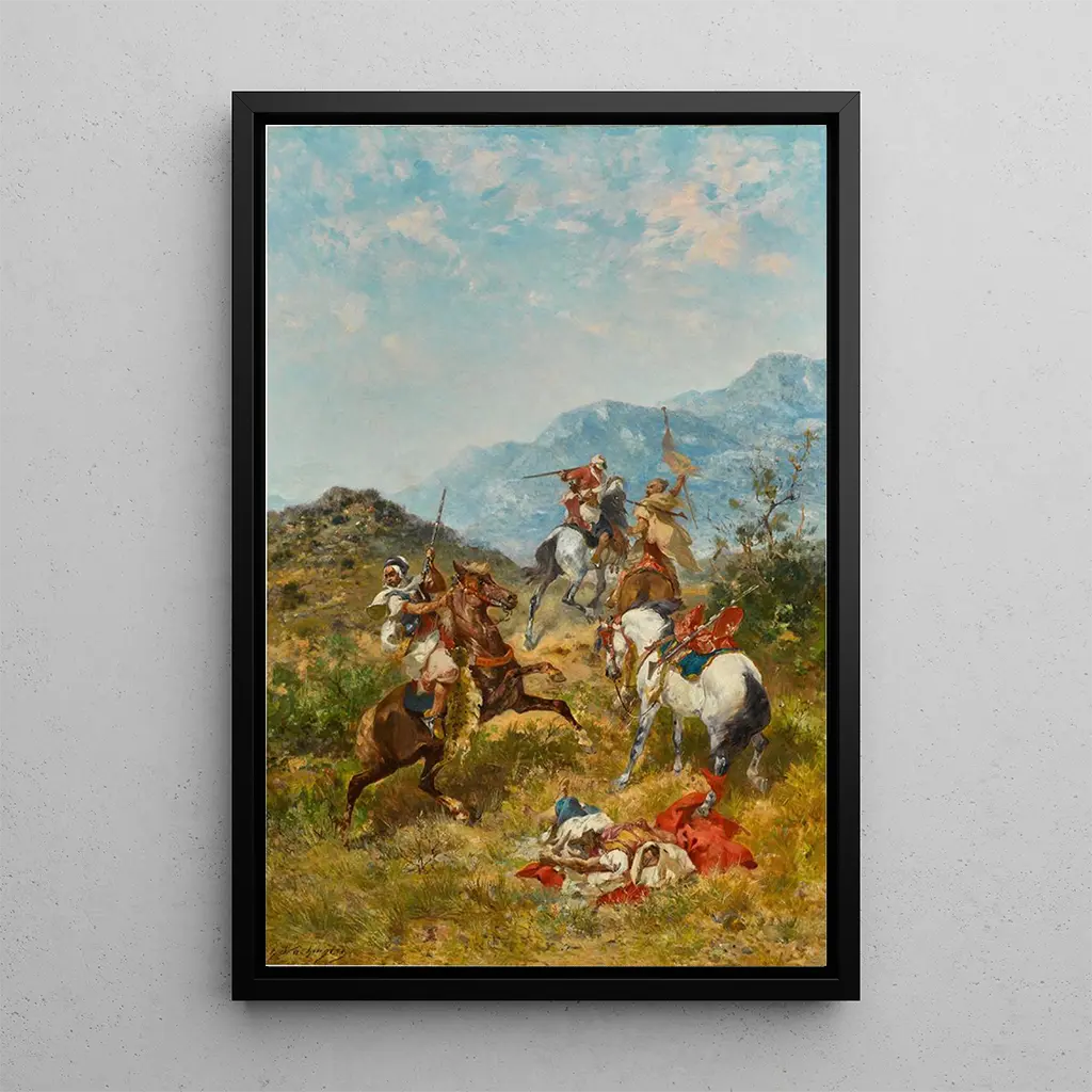 La riproduzione di 'Una scaramuccia' è una scelta decorativa audace che saprà valorizzare il tuo spazio abitativo. Che si tratti di un ufficio, di un soggiorno o di una sala giochi, questa opera porta un tocco di storia e di dinamismo alla tua decorazione. La qualità di stampa garantisce una fedeltà ai dettagli dell'opera originale, permettendo di apprezzare appieno la scena rappresentata. Aggiungendo questa stampa d'arte alla tua collezione, crei un punto focale coinvolgente che susciterà interesse e conversazioni, arricchendo al contempo l'atmosfera del tuo interno.