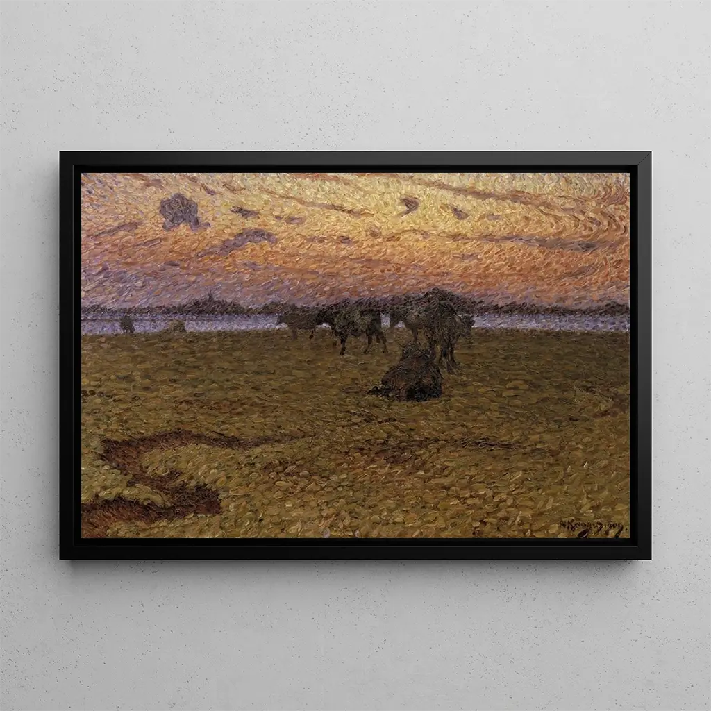 Vaches sur la plage : una scena bucolica in armonia con la natura. In questa affascinante opera, il quadro Vaches sur la plage dipinge una scena idilliaca in cui le mucche pascolano pacificamente sulla riva. I colori morbidi e pastello evocano un'atmosfera tranquilla, mentre la luce del sole si riflette sull'acqua, creando un gioco di riflessi affascinante. La tecnica dell'artista mette in risalto le texture dell'erba e del mare, rendendo la composizione vivace e immersiva. Questa opera invita alla rêverie, trasportando lo spettatore in un universo dove la natura e la vita rurale si incontrano armoniosamente. Cows on the Beach : uno sguardo sulla vita rurale. Cows on the Beach è il risultato di un artista il cui lavoro si inserisce in una tradizione di rappresentazione della vita rurale. Influenzato dai paesaggi bucolici e dalla semplicità della vita in campagna, questo artista riesce a catturare la bellezza dei momenti ordinari. Il suo stile, allo stesso tempo realistico e poetico, permette di percepire la tranquillità della scena. Evidenziando la relazione tra gli animali e il loro ambiente, sottolinea l'importanza della natura nella nostra quotidianità e ci ricorda la bellezza dei paesaggi campestri. Una riproduzione decorativa con molteplici vantaggi. La riproduzione di Vaches sur la plage è una scelta decorativa che si integra perfettamente in diversi spazi come il soggiorno, la cucina o anche un ufficio. La sua qualità di stampa e la fedeltà ai colori originali la rendono un pezzo attraente che abbellisce qualsiasi parete. Con il suo fascino bucolico, questa tela porta un tocco di freschezza e serenità nel vostro interno, celebrando la bellezza della vita rurale. Optando per questo quadro, arricchite il vostro arredamento con un'opera che evoca la pace e la semplicità della natura.