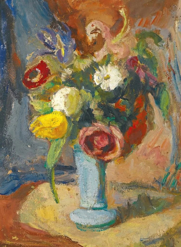 Il quadro "Vase de fleurs" di Roderic O'Conor è un'opera vibrante che cattura l'occhio per il suo uso audace dei colori e delle forme. I fiori, splendidi e delicati, sembrano quasi danzare nel loro vaso, creando un'atmosfera di gioia e leggerezza. La tecnica dell'artista, che mescola abilmente impressionismo e post-impressionismo, dà vita a ogni petalo e a ogni foglia, invitando lo spettatore a immergersi in un mondo di bellezza floreale. La luce svolge un ruolo essenziale, illuminando le sfumature e le texture, e trasformando questa tela in una vera celebrazione della natura.