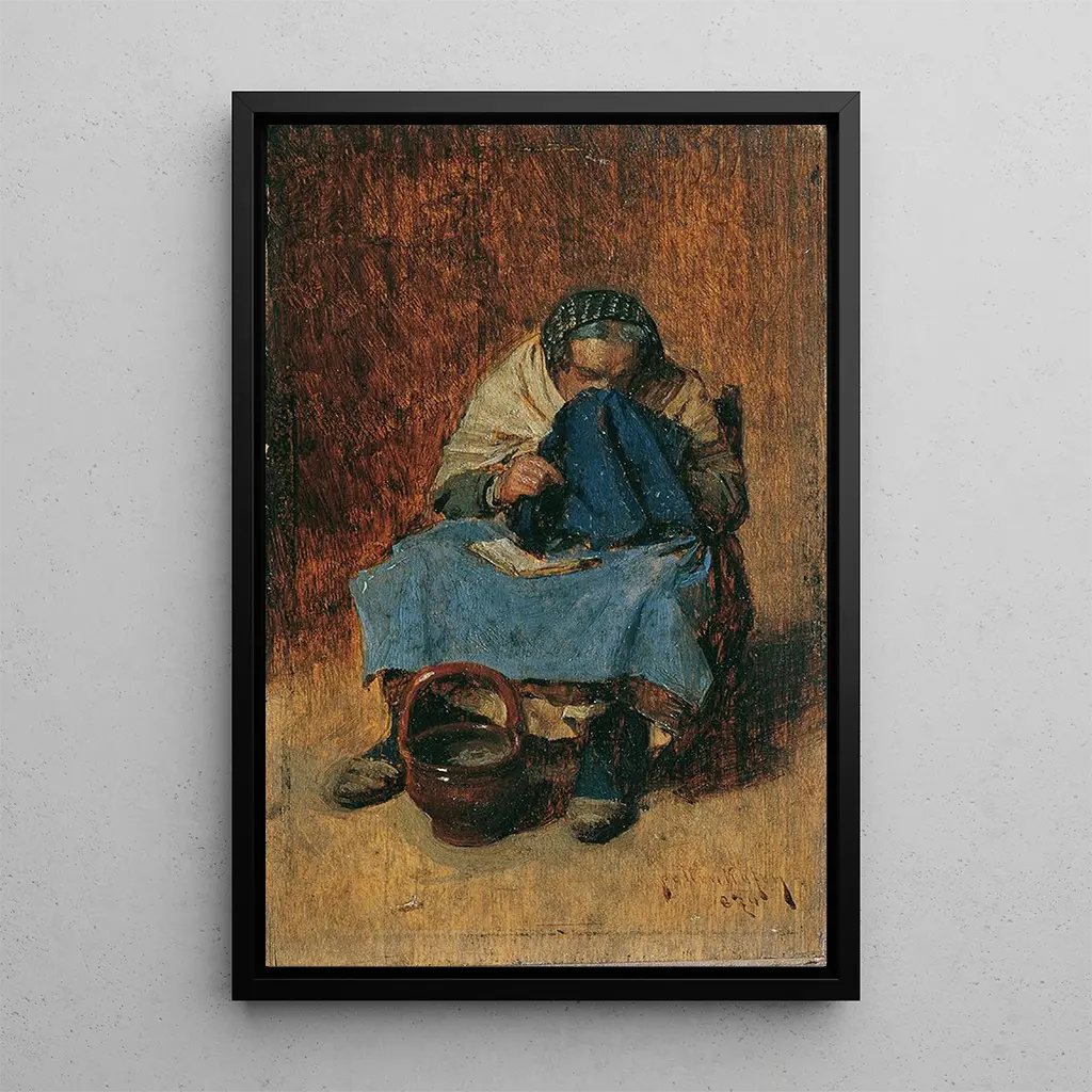 In "Vecchia veneziana che si soffiava il naso", August von Pettenkofen ci immerge nell'intimità di una scena quotidiana, dove il gesto semplice di una donna anziana diventa un'opera d'arte. La palette di colori delicati e le sfumature sottili della pelle testimoniano una padronanza tecnica impressionante. L'atmosfera che si percepisce da questa tela è intrisa di nostalgia e tenerezza, invitando lo spettatore a riflettere sul passare del tempo e sulla bellezza dei momenti fugaci della vita. Ogni dettaglio, dal tessuto dei suoi vestiti alle espressioni del suo volto, racconta una storia ricca di emozioni.