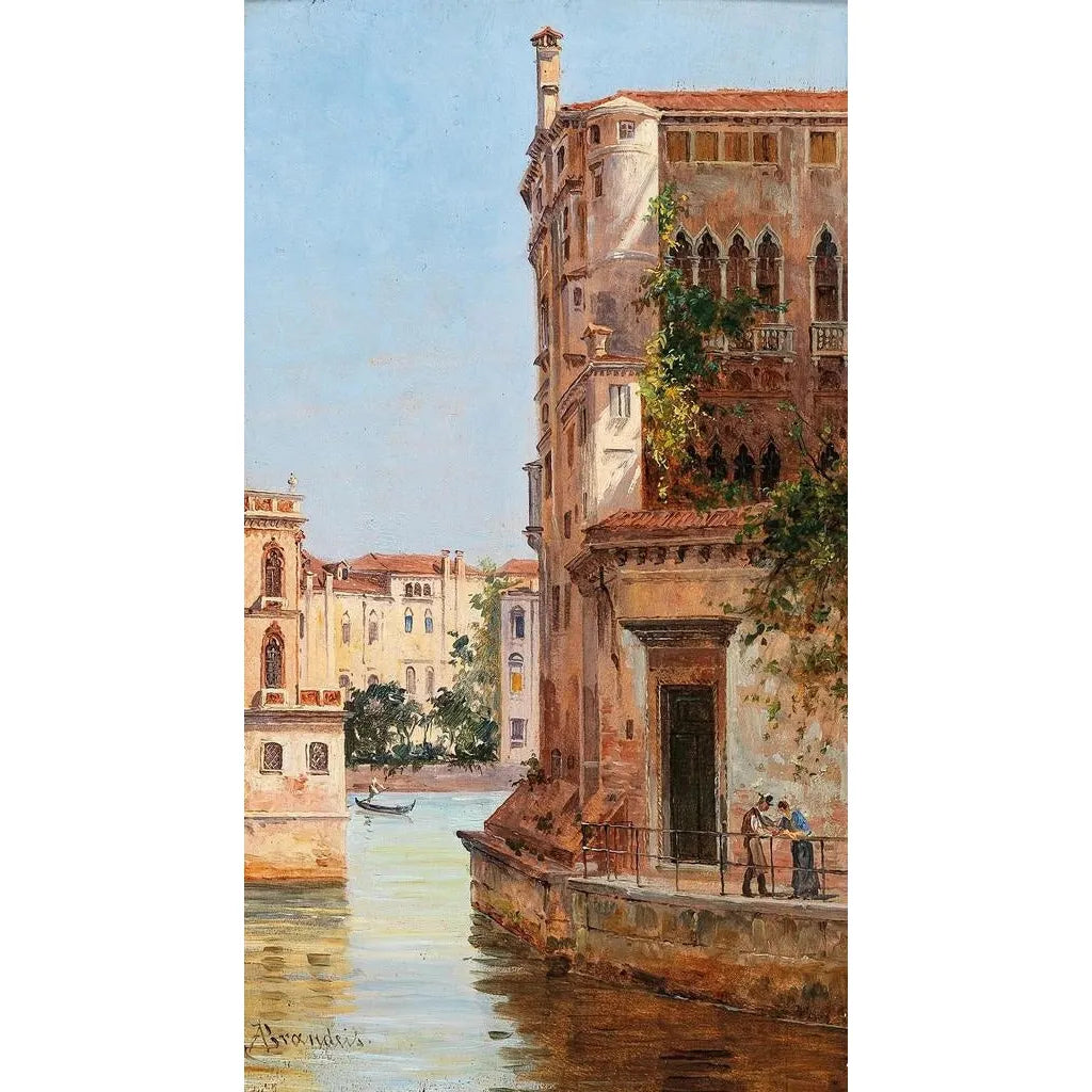 Antonietta Brandeis, nata nel 1857, è una figura emblematica dell'arte veneziana del XIX secolo. Influenzata dal movimento impressionista, si distingue per la sua capacità di catturare la luce e l'atmosfera dei paesaggi urbani. La sua carriera, segnata da esposizioni in tutta Europa, testimonia l'importanza della sua opera nel panorama artistico del suo tempo. Brandeis, spesso in viaggio attraverso l'Italia, ha saputo catturare la magia di Venezia, facendo delle sue tele testimonianze preziose di questa città unica. Il suo stile, allo stesso tempo realistico e poetico, continua a ispirare gli appassionati d'arte.