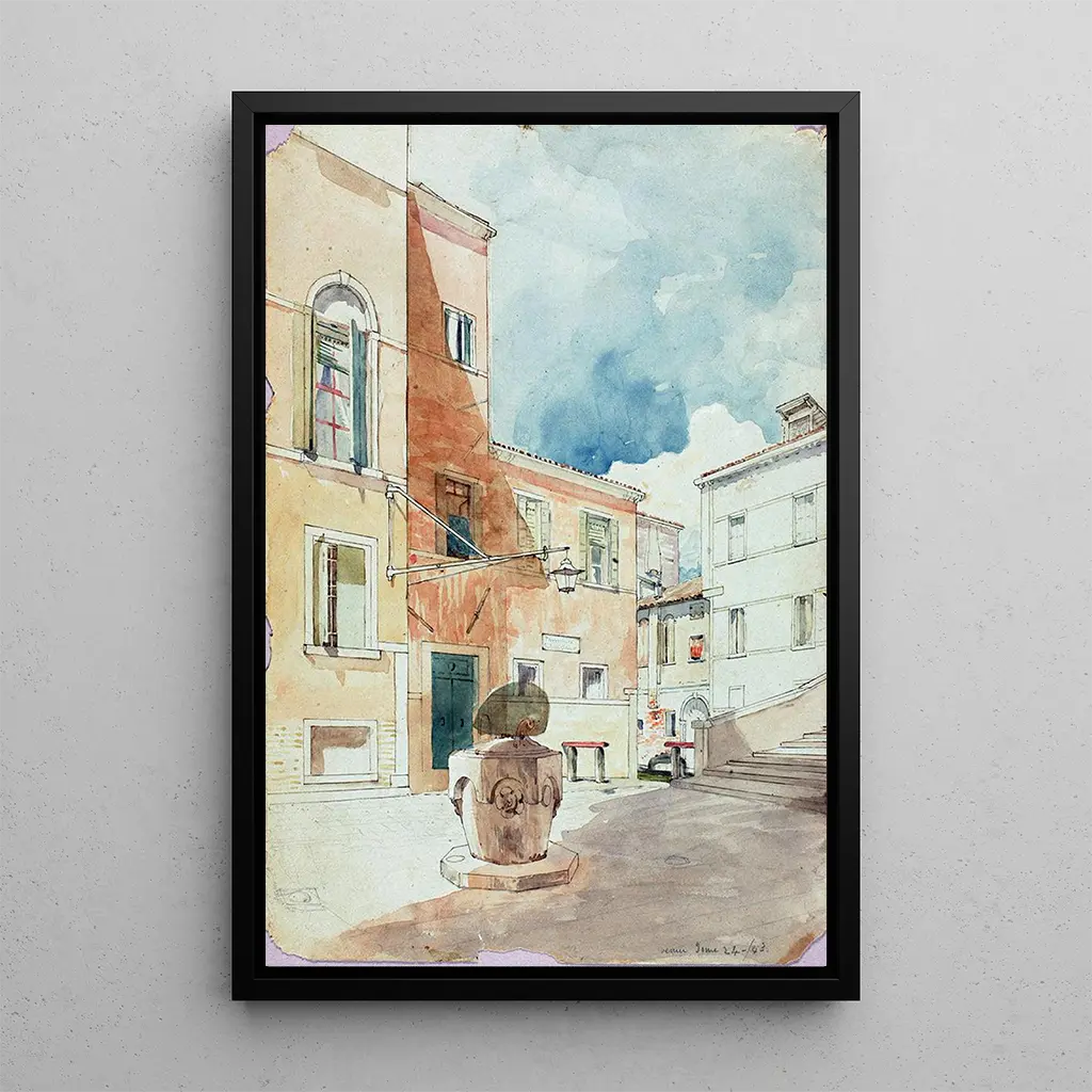 Venise : un quadro che cattura la magia dei canali La stampa d'arte di Venezia di Miner Kilbourne Kellogg evoca un'atmosfera incantata, dove i riflessi degli edifici sull'acqua creano una danza di colori. Le tonalità morbide di blu e rosa si mescolano armoniosamente, mentre i dettagli architettonici dei palazzi veneziani emergono con finezza. La tecnica dell'acquarello, utilizzata da Kellogg, conferisce all'opera una leggerezza e una fluidità che ricordano i movimenti delle gondole che scivolano sui canali. Questa tela invita a una contemplazione serena, trasportando lo spettatore nel cuore della Serenissima, dove ogni angolo di strada sembra raccontare una storia. Miner Kilbourne Kellogg : un testimone dell'America romantica Miner Kilbourne Kellogg, attivo nel XIX secolo, è un artista americano il cui lavoro si inscrive nel movimento romantico. Influenzato dai paesaggi europei, ha saputo catturare la bellezza dei luoghi che ha visitato, in particolare Venezia. Il suo stile si caratterizza per un'attenzione particolare ai dettagli e una palette di colori vibranti. Kellogg è stato anche un illustratore prolifico, contribuendo alla sua notorietà. Integrando elementi della natura e dell'architettura, ha saputo creare opere che risuonano con l'anima del viaggio e dell'esplorazione. Una riproduzione decorativa con molteplici vantaggi La stampa d'arte di Venezia è un pezzo decorativo che si integra perfettamente in diversi spazi, che si tratti di un soggiorno, di un ufficio o di una camera da letto. La qualità di stampa garantisce una fedeltà ai colori e ai dettagli dell'opera originale, offrendo così un'attrattiva estetica indiscutibile. Aggiungendo questa tela alla tua decorazione, porti un tocco di eleganza e di evasione, celebrando allo stesso tempo l'arte e la cultura. La magia di Venezia, catturata da Kellogg, diventa così un elemento centrale del tuo interior, suscitando ammirazione e contemplazione.